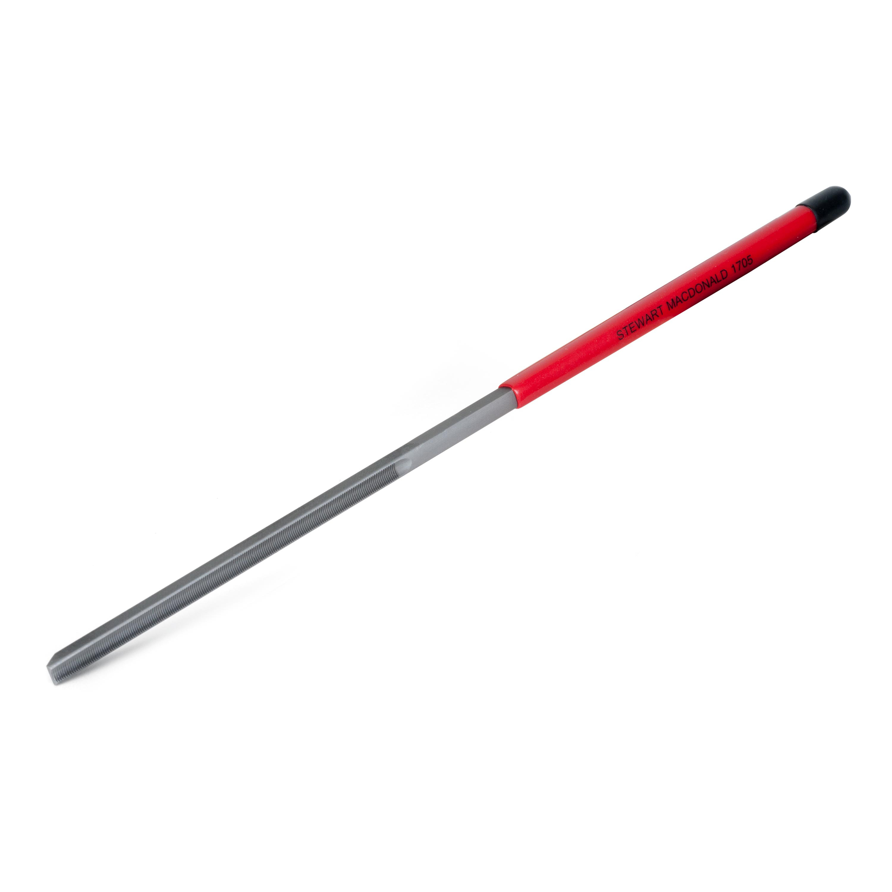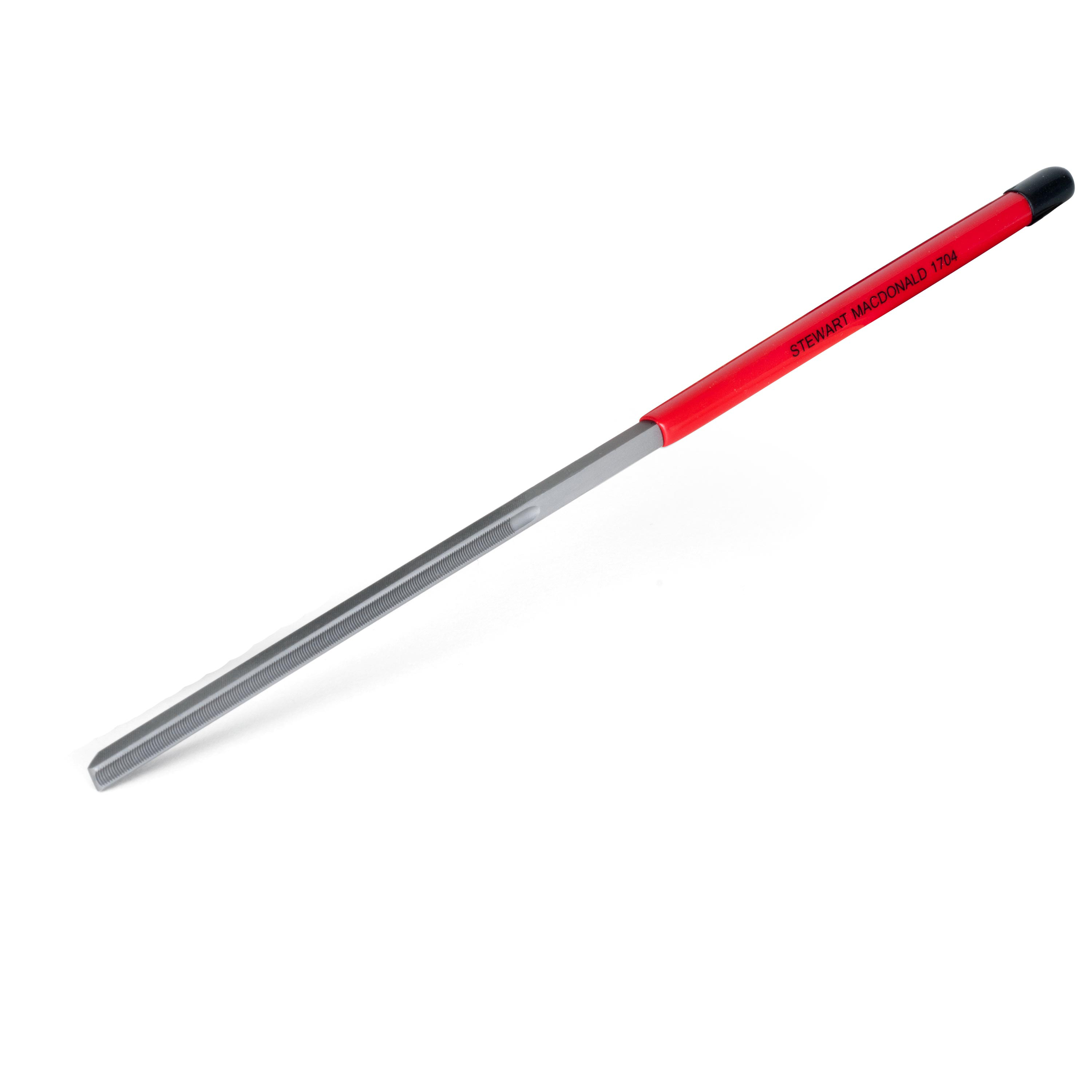 Cada una de estas resistentes limas de acero tiene una longitud de 7-7/8" (las limas similares de otros proveedores son de solo 3"), una longitud práctica para archivar los extremos de la trasvase sin atascar el mango contra el borde del diapasón. La longitud de la superficie de corte es de 2-3/4". La lengüeta de la lima está recubierta de goma para mayor comodidad.