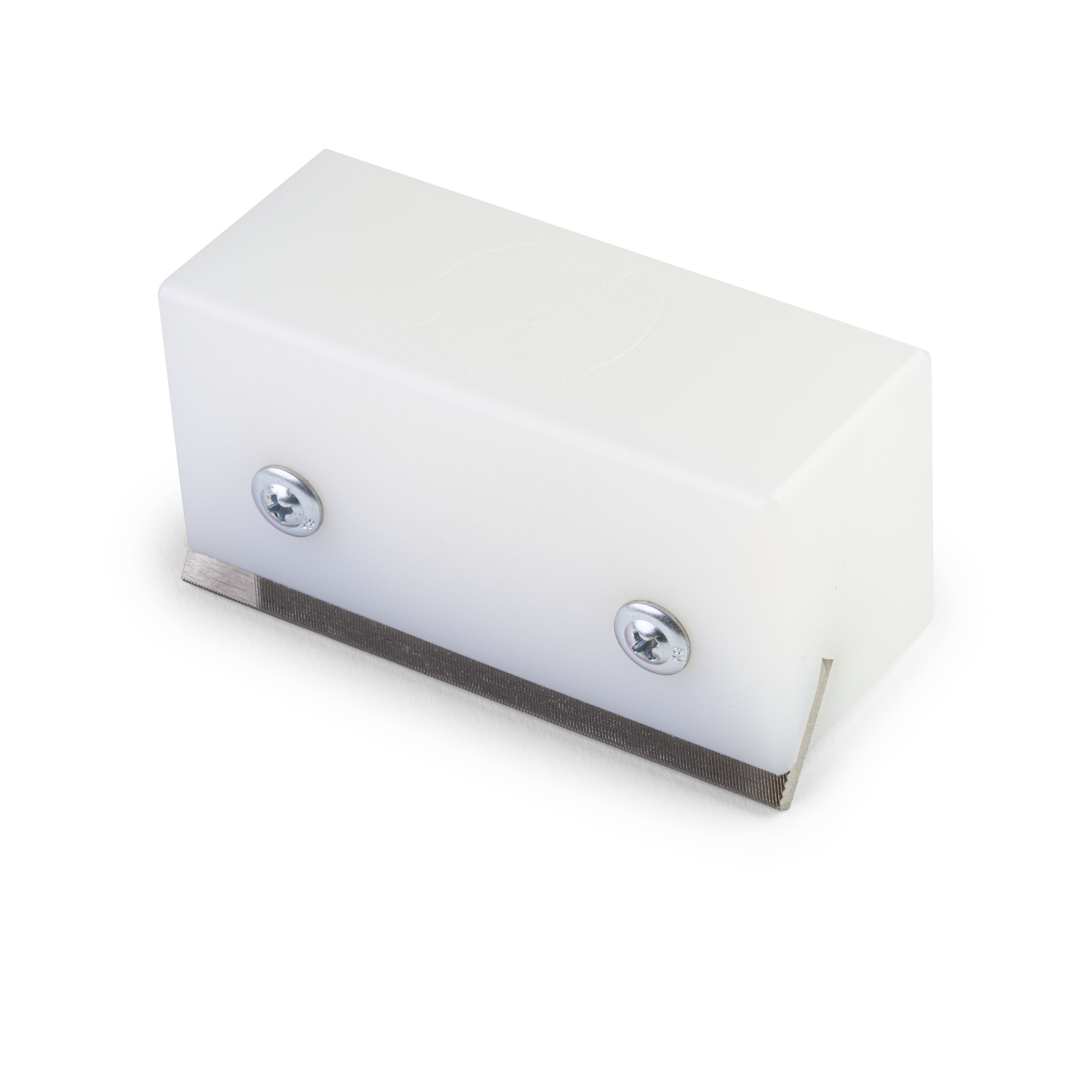 Este bloque de 1-1/2" x 1-3/4" (hay dos longitudes disponibles) sostiene una lima plana de dientes finos extraíble en el ángulo adecuado de 35° para biselar todos los extremos del traste a lo largo del borde del diapasón. El bloque está hecho de material de baja fricción para un limado suave y fácil. El modelo de 3-3/4" es para tablones de dedos cortos (mandolinas, por ejemplo) y para refrets parciales de limado por puntos. También es útil para trabajar en instrumentos usados con cuellos que no son rectos.