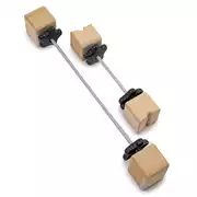 Dentro del molde, las varillas de extensión roscadas ajustables con tornillo de mano con calabozos de madera noble contorneados alinean la cintura de la guitarra, el bloque del mástil y el bloque de la cola. Los bloques de la cintura tienen muescas para dejar espacio libre en las tiras laterales.