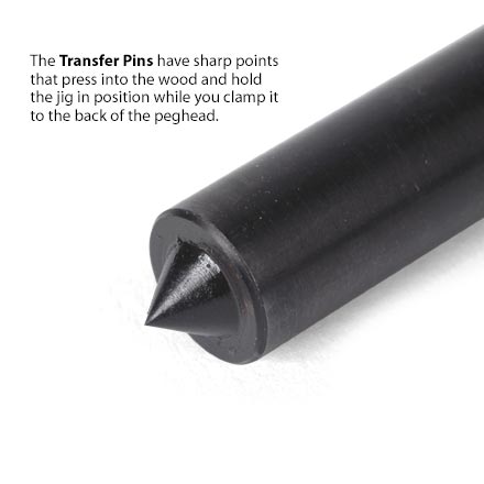 Nuestra plantilla para taladrar orificios de clavijero de 1/4" de diámetro garantiza la colocación correcta de las eje de cuerda y mantiene la broca manual correctamente alineada. Esto es esencial para los instrumentos nuevos y también para retaladrar las cabezas de clavija existentes.