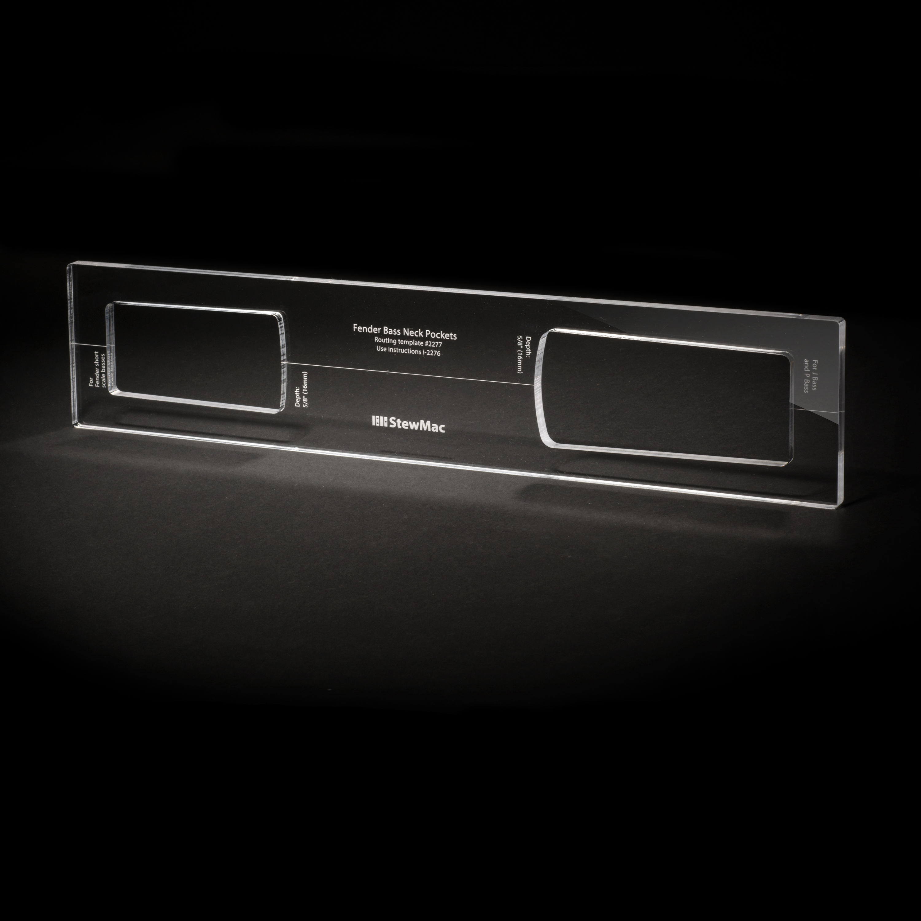 Las plantillas de enrutamiento de bolsillo de cuello sirven para fresado el cavidad del cuerpo para aceptar un mástil atornillado de guitarra o bajo con forma de guardabarros. Cada uno se vende por separado.