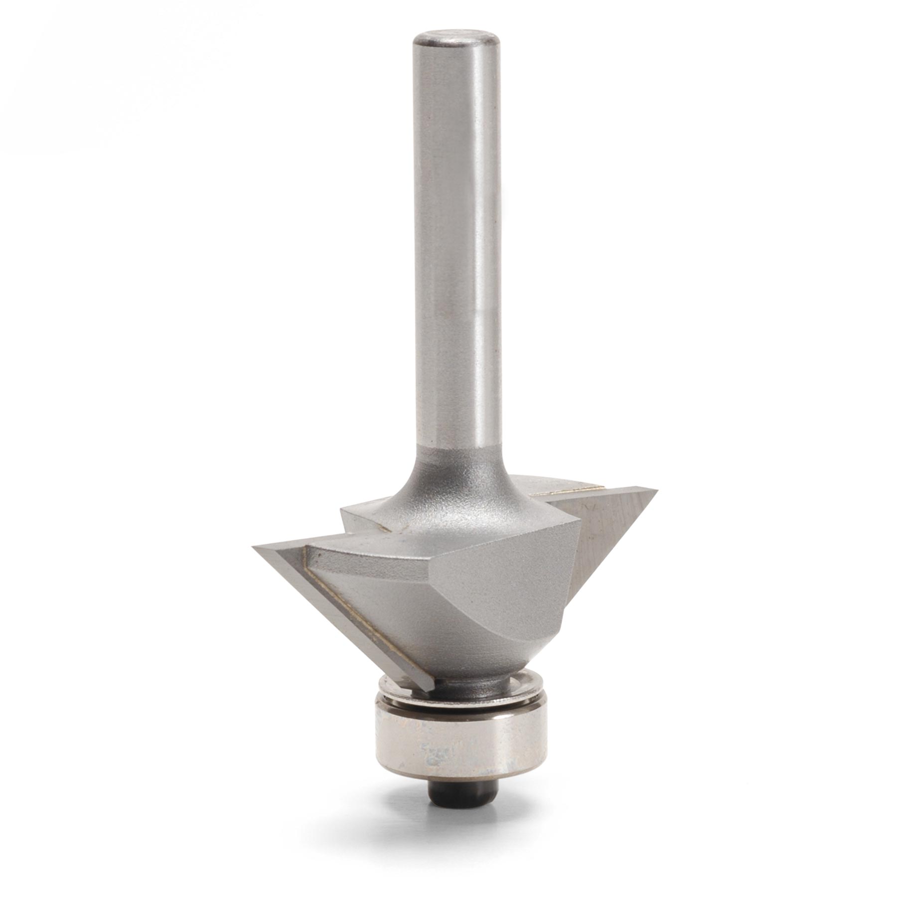 La fresa con punta de metal duro tiene un mango de 1/4" de diámetro y una guía de cojinete de bolas de 1/2" de diámetro.