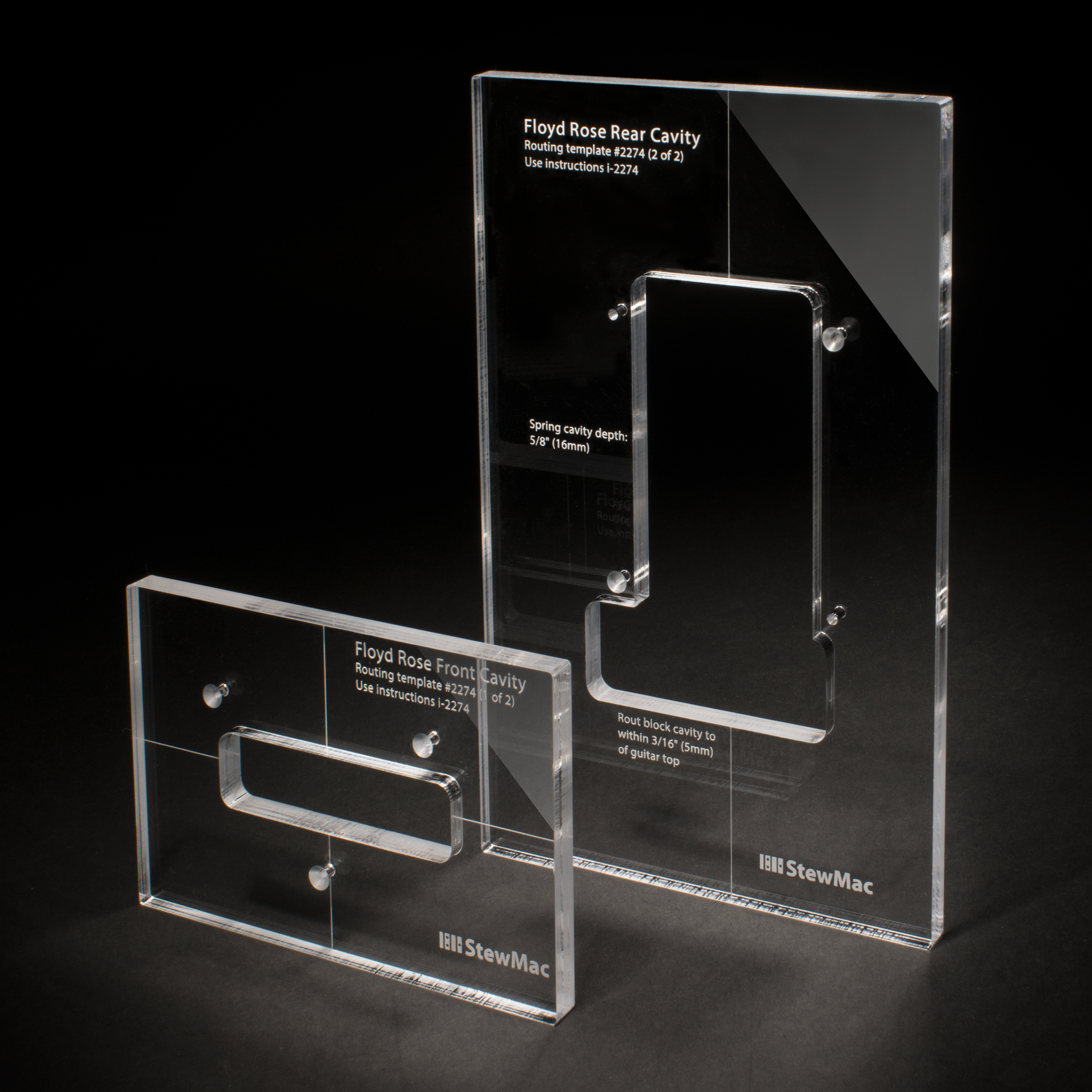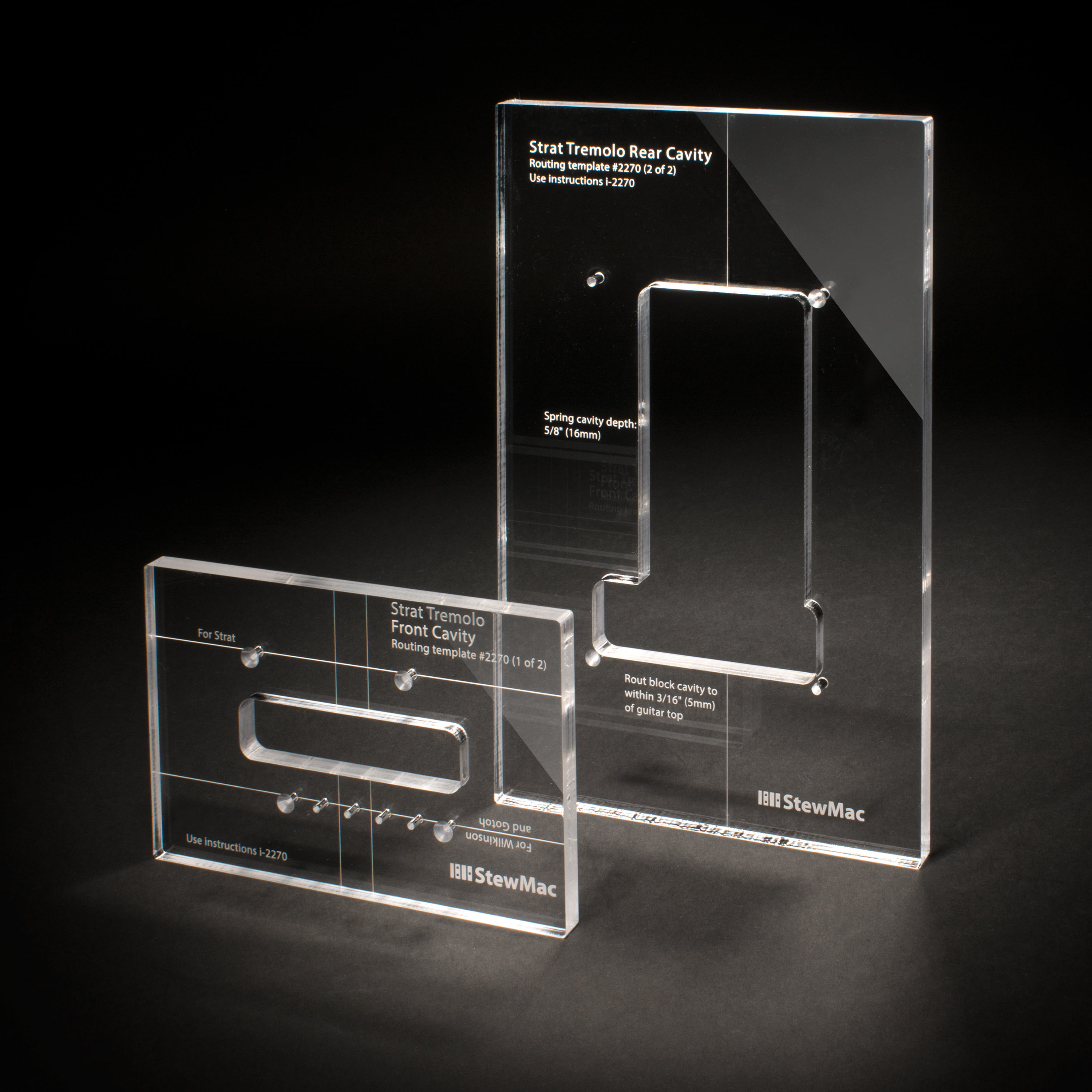 Las plantillas mejoradas de StewMac ahora son más gruesas con bordes suaves cortados con láser. Las medidas de profundidad correctas están grabadas directamente en la plantilla, por lo que no es necesario que hagas un rompecabezas sobre las dimensiones de la cavidad, hemos hecho ese trabajo por ti.
