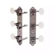 ¡Los clavijeros de preguerra renacen! Nuestros tres 3-on-plate clavijeros replicados con un distintivo motivo grabado, suministrados por Waverly a fabricantes de guitarras desde el 20 hasta el 40s.
