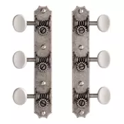 Los clavijeros de la Golden Age son el renacimiento de los diseños populares de las máquinas de clavijero de principios del siglo XX, con simples placas de acero y engranajes abiertos. Durante mucho tiempo, coleccionistas y reparadores han solicitado sustituciones para las guitarras más antiguas y mejorar su ajuste. Nuestras versiones especiales con acabado relic de níquel complementan los herrajes vintage y añaden un aspecto auténtico a las guitarras de reproducción.