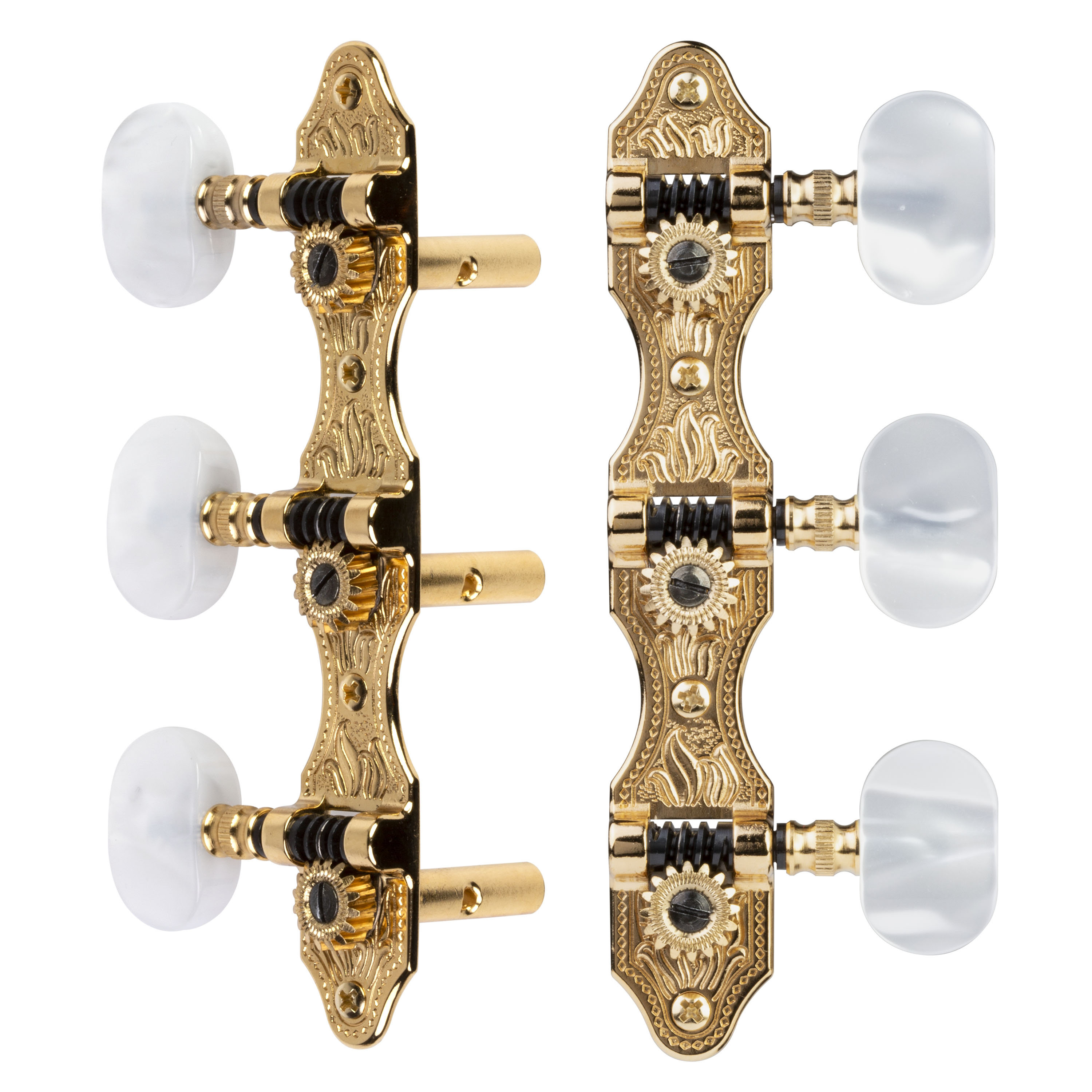 Los sintonizadores cuentan con 16:1 relación, espaciado de eje de cuerda de 1-3/8 in y perillas de plástico nacarado. Tornillos de montaje incluidos. Se requieren orificios de clavijero 10 mm de diámetro.Consejos de instalación