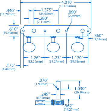 - eje de cuerda de 1/4" con espaciado de 1-3/8" (34,93 mm)