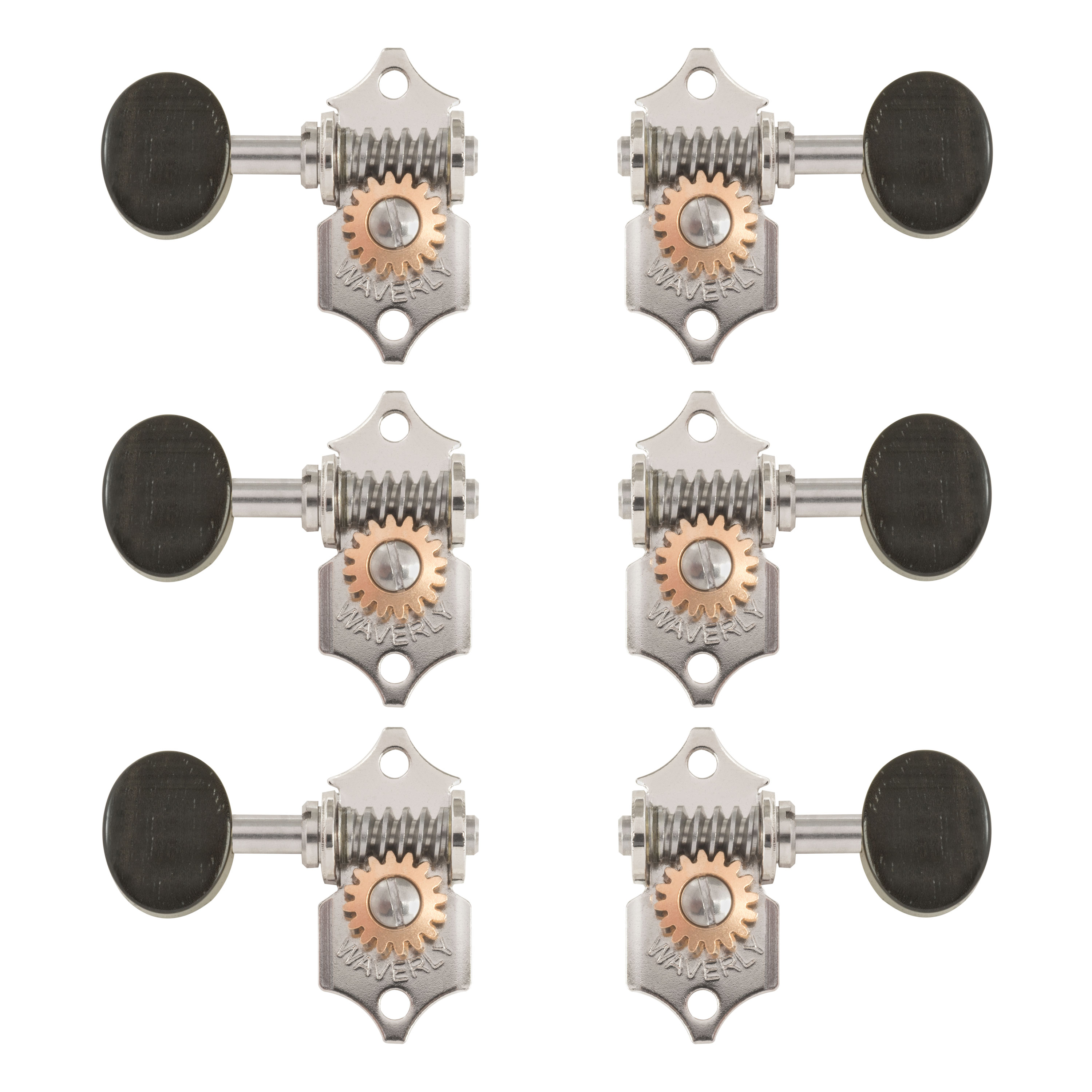 Sintonizadores de guitarra Waverly con perillas de ébano para cabezas de tetones ranuradas
