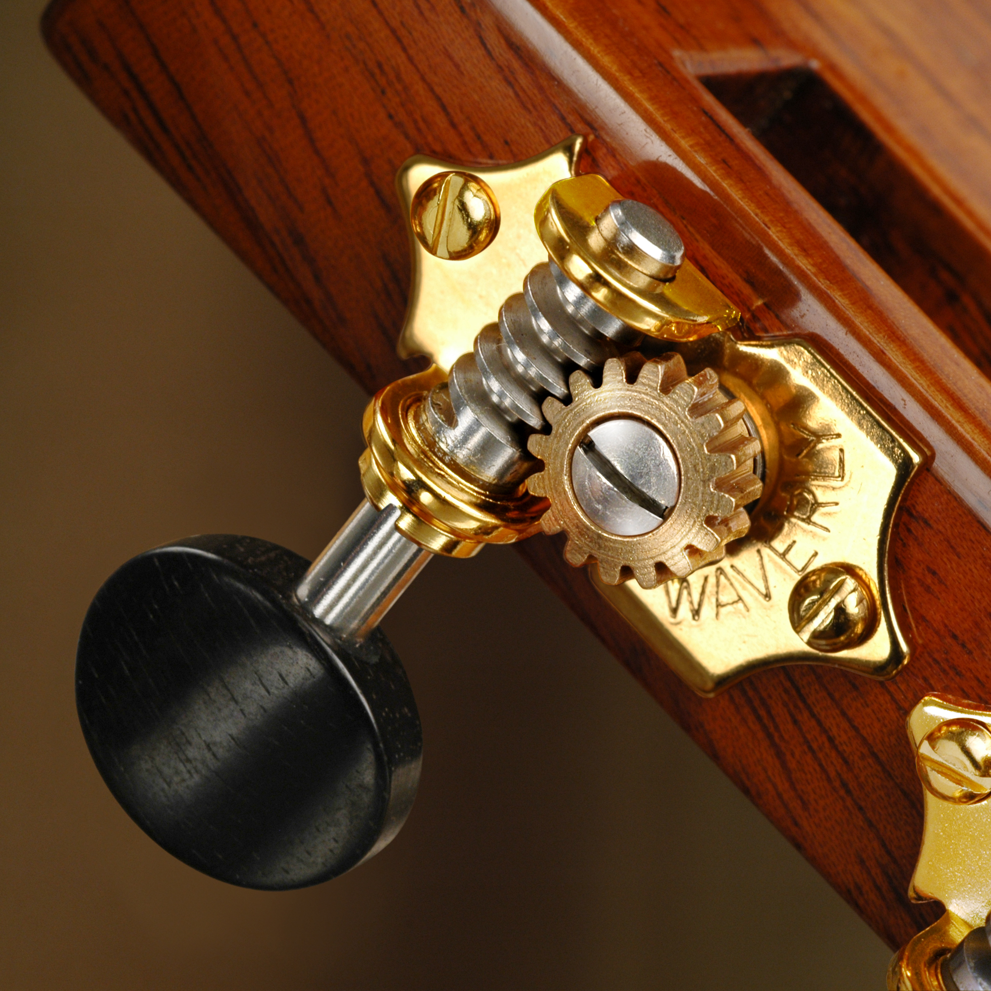 Con las clavijas Waverly, afinas tu guitarra y la afinación se mantiene. El diseño patentado de Waverly combina acero inoxidable con bronce para crear un ajuste suave y antideslizante. Las máquinas Waverly, clavijeros para instrumentos valiosos, están hechas a mano para ajustarse con precisión sin perforar guitarras Martin y Gibson antiguas. Fabricantes como C.F. Martin, Gibson, Collings, Santa Cruz, Huss & Dalton, Sams y Bourgeois eligen Waverlys por sus mejores instrumentos.