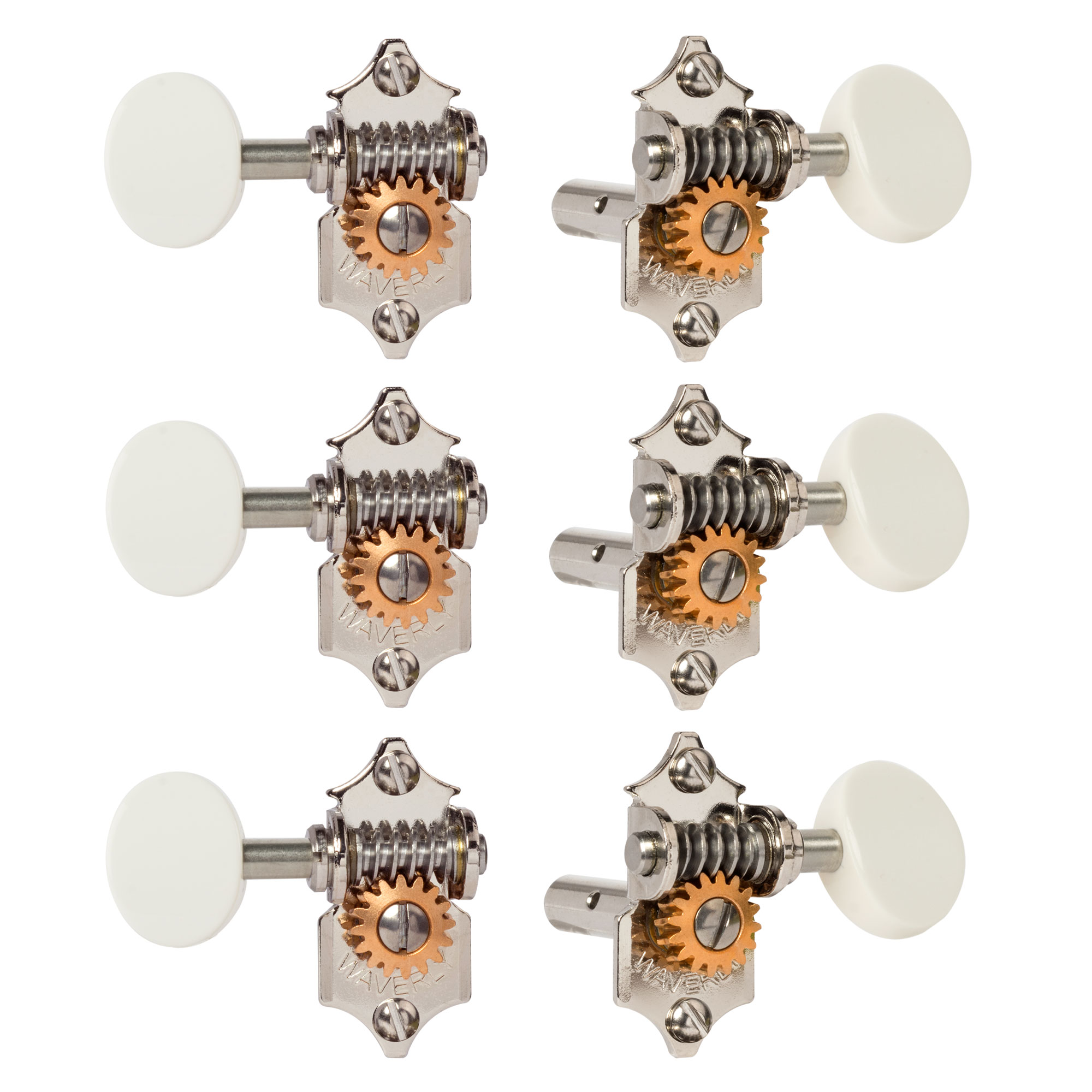 Sintonizadores de guitarra Waverly con perillas blancas para cabezas de estribo