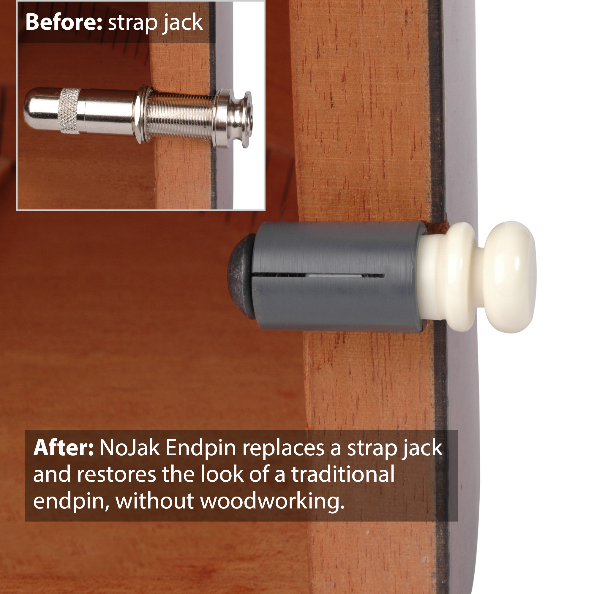 ¿Deselectrificar su guitarra acústica? Sustituya su jack de correa por nuestro exclusivo endpin NoJak y recupere el aspecto tradicional.