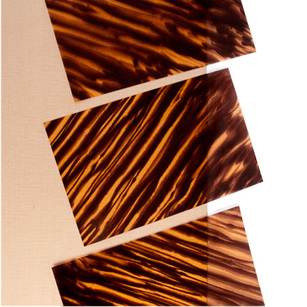 El tortoloide es un material de protector de púas atractivo desarrollado y hecho a mano por Mario Proulx. Las resinas y tintes vertidos reproducen patrones auténticos de carey: raya de tigre, carey y remolinos. Tortoloid es una opción popular para hacer que las guitarras de estilo vintage parezcan aún más vintage. ¿No estás contento con los modernos pickguards "impresos"? El tortoloide es una gran alternativa.