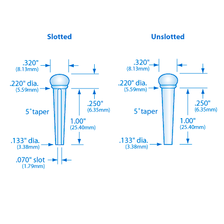 Los pines ranurados tienen una ranura de cuerda de 0,070" (1,78 mm).