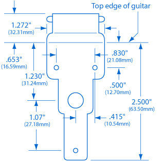 Diseño original de trapecio con bisagras, instalado en las arquetas vintage Gibson, Gretsch, Martin y National.Este cordal se extiende aproximadamente 127 mm ( 5") sobre la parte superior de la guitarra y 63,5 mm ( 2-1/2") sobre el extremo del instrumento. La placa de montaje en forma de deco tiene un orificio de endpin de 11/32" de diámetro (8,73 mm). La barra de montaje de latón mecanizado tiene un espaciado de cuerdas de 2-1/16" (52,39 mm). Tornillos incluidos.