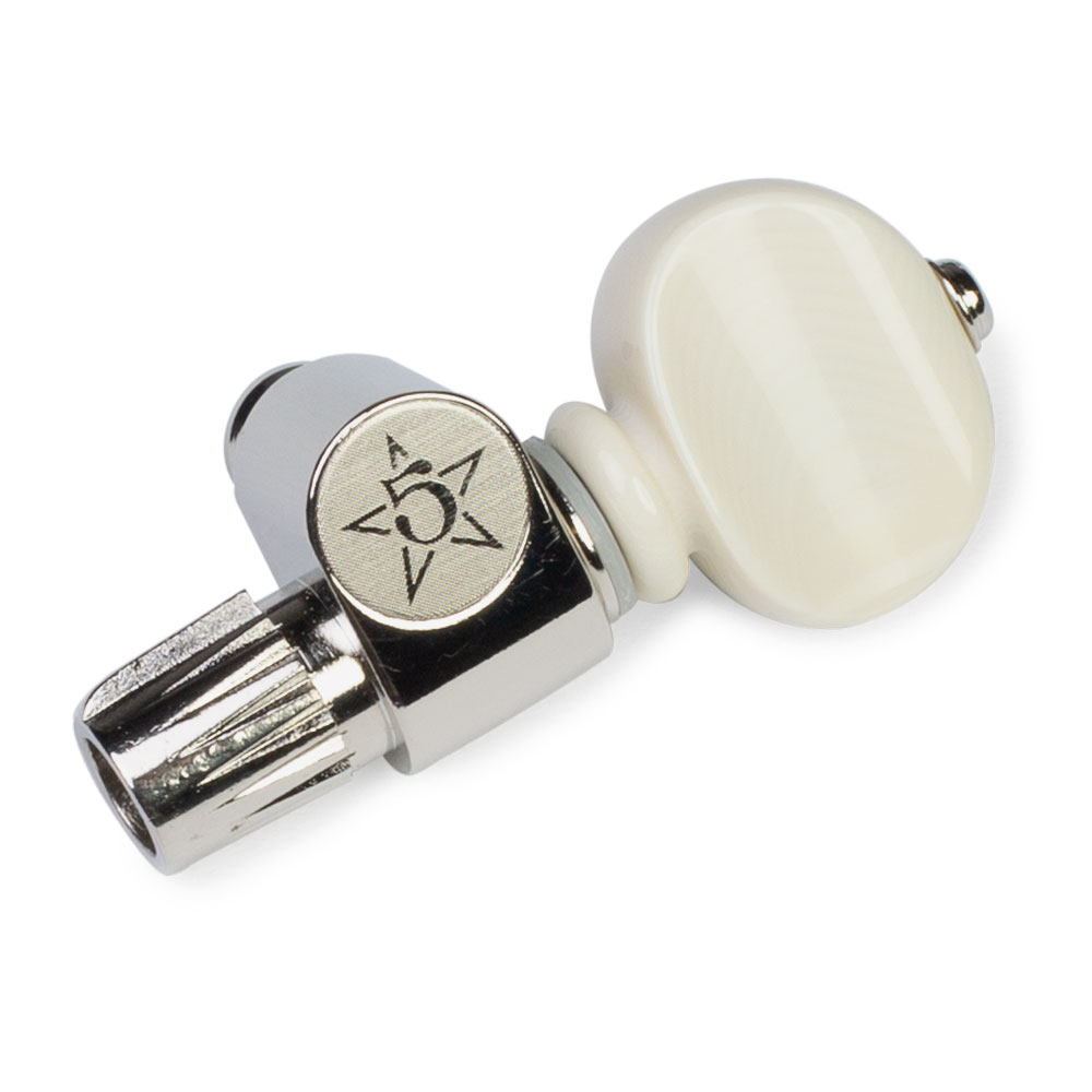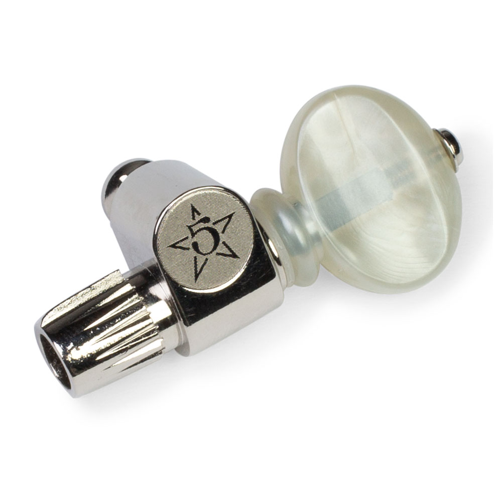 Esta clavija de cuerda Five-Star tiene un diseño tradicional de engranaje de tornillo sin fin de alta calidad. Cuenta con una clavija en ángulo recto con eje de cuerda, con una relación de 14:1 cambio para un ajuste suave y preciso.