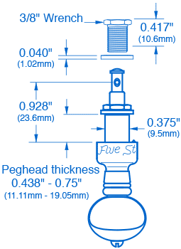 Las clavijas Five-Star se ajustan a las clavijas estándar de 3/8" (10,00 mm) de diámetro e incluyen casquillos hexagonales roscados con arandelas de cabeza de clavija. Se adaptan a grosores de cabeza de clavija de 11,11 mm a 19,05 mm ( 7/16 a 3/4 pulgadas).