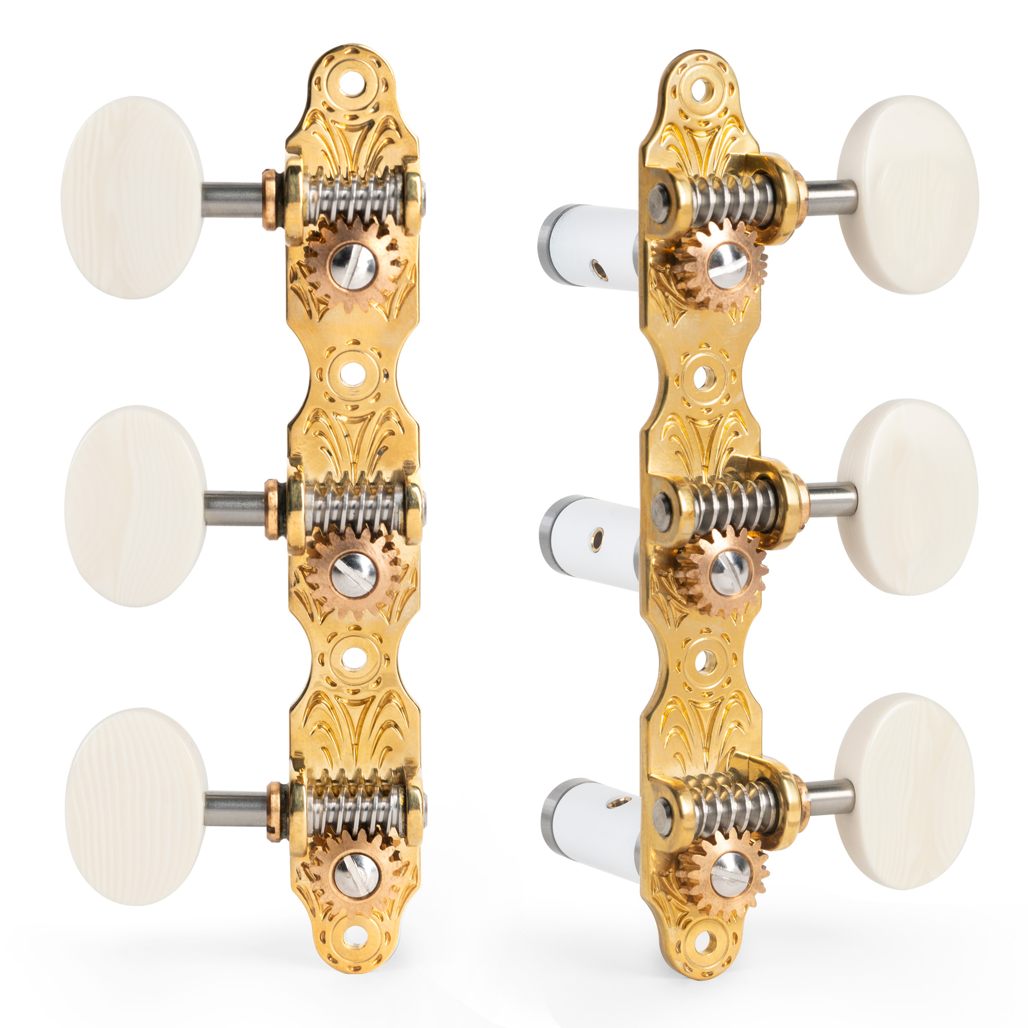 - Los engranajes de 16:1 corona de aleación de bronce son más duraderos que los engranajes de latón utilizados en otros clavijeros.
