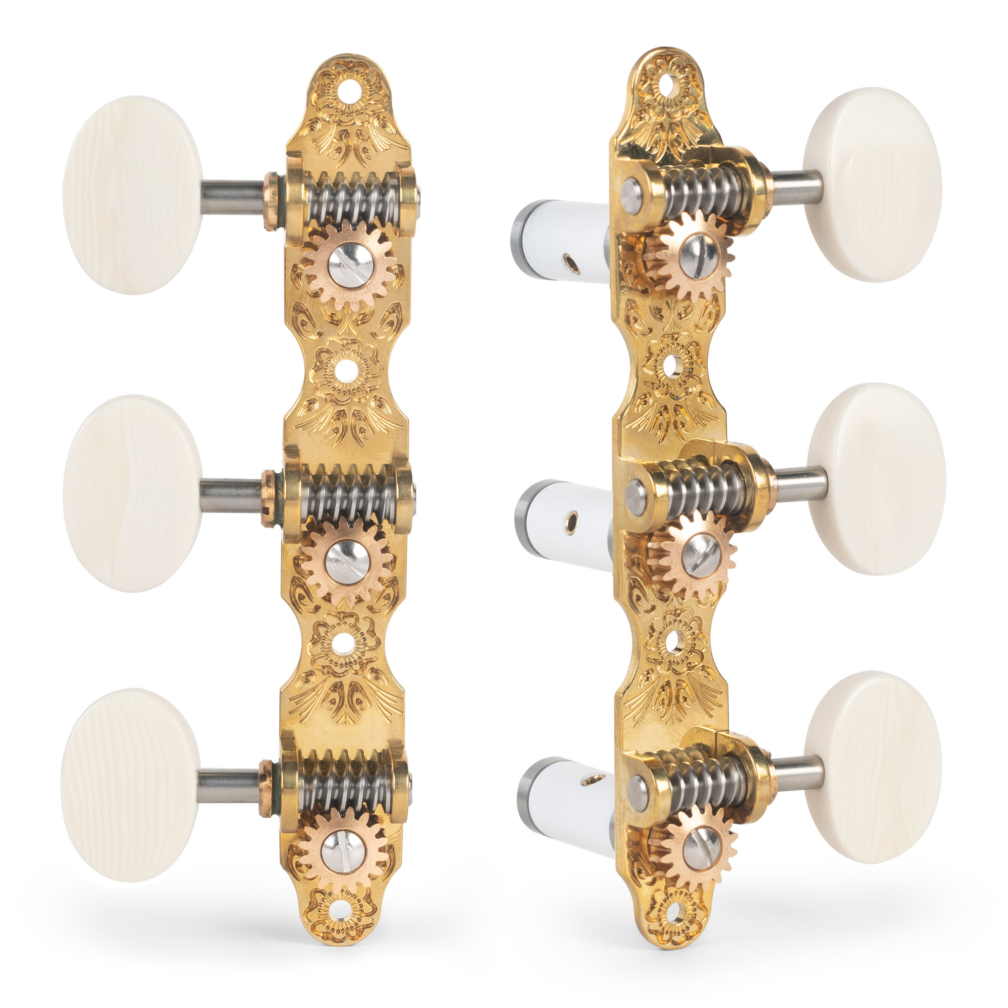 - Los engranajes de 16:1 corona de aleación de bronce son más duraderos que los engranajes de latón utilizados en otros clavijeros.