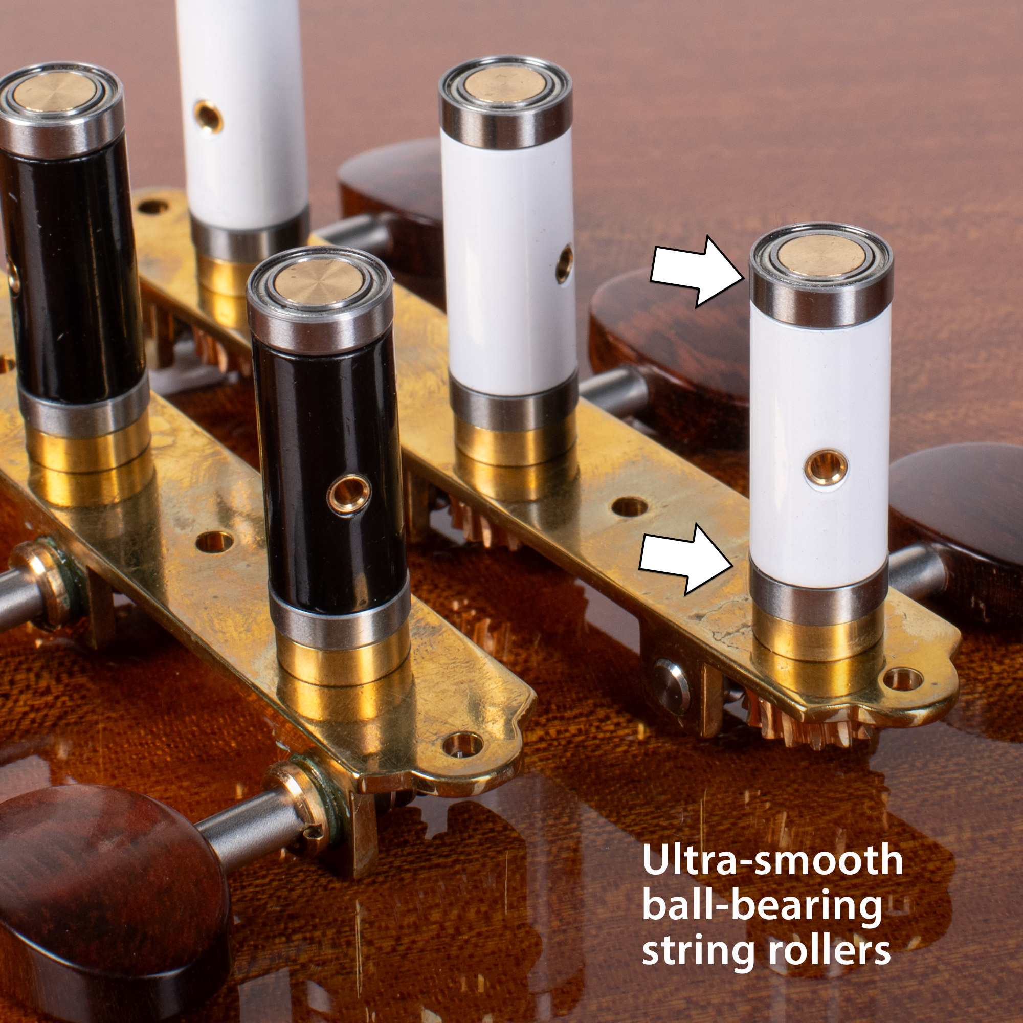 - Los engranajes de 16:1 corona de aleación de bronce son más duraderos que los engranajes de latón utilizados en otros clavijeros.