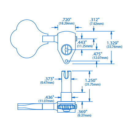 Sintonizador compacto y ligero para cabezales de graves más pequeños con relación 20:1 de transmisión. Convertible para instalación a ambos lados del pala.