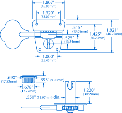 clavijeros de graves "Orejas de elefante" con relación de 20:1 transmisión suave y orificios de clavijero eje de cuerda ranurada de 11/16" de diámetro.