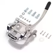 Equipo original en guitarras famosas durante medio siglo. El legendario vibrato Bigsby montado a mano cuenta con una barra de montaje de cuerda flotante sobre cojinetes de agujas de baja fricción, para un retorno preciso al paso. Cada modelo tiene un marco de aluminio fundido en arena y un brazo de acero inoxidable.