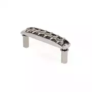 El puente presenta el diseño pivotante original: los postes de soporte encajan en los casquillos del cuerpo empotrados y descansan sobre tornillos Allen de altura ajustable. Esto permite que el puente pivote con el movimiento de tremolo para un retorno al campo más preciso. Seis silletas permiten la configuración de entonación y variaciones menores de espaciado de cuerdas . Las alturas del sillín son ajustables por Allen.Esparcimiento de la cadena: 2-3/16" (55,56 mm)