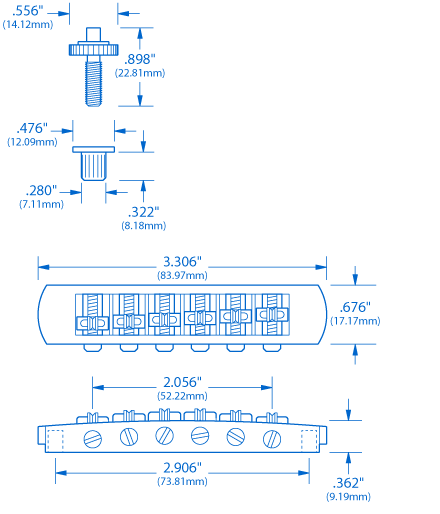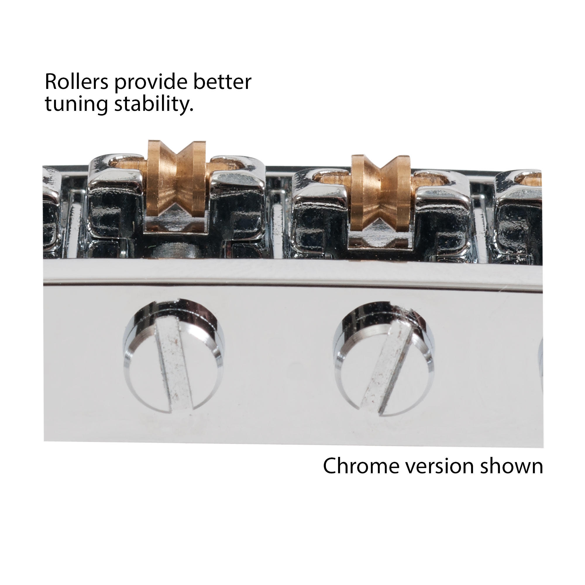 Hemos diseñado este puente rodante para trabajar con los vibratos Bigsby, en lugar del Nashville Tune-o-matic. Coincide con el radio de 12" de Nashville, por lo que mantiene la acción de cuerda a la que está acostumbrado. También le dimos un perfil bajo para mantener las cuerdas alejadas del cuerpo del puente, eliminando una fuente frecuente de problemas vibratorios.