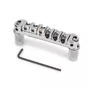 Este puente único de latón postmontado tiene silletas de rodillo ranurados de baja fricción para un retorno suave de la cuerda, además de características avanzadas para una mejor estabilidad de la entonación. Los orificios para los postes del puente se alargan para permitir el ajuste general de la entonación, y los tornillos Allen bloquean el puente a los postes. Los silletas se pueden ajustar individualmente para una entonación precisa, y también se fijan al puente con tornillos Allen. Se incluyen una llave Allen y postes de montaje de rueda con casquillos.