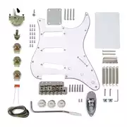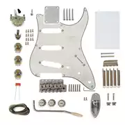 #10782 Hardware Set for Strat cuenta con herrajes de cromo pulido y un protector y perillas blancos limpios.