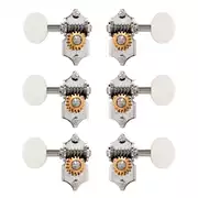 Los clavijeros Waverly cuentan con eje de cuerda cónicos de 1/4" de diámetro y los casquillos hexagonales de latón de ajuste a presión se ajustan a orificios de clavijero 11/32" de diámetro. Tornillos incluidos.