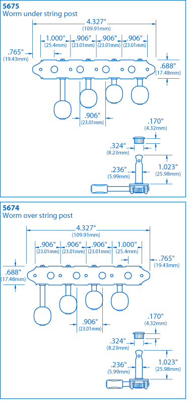 #5674 con engranaje de tornillo sin fin sobre la eje de cuerda (girar la perilla en sentido horario para apretar la cuerda)