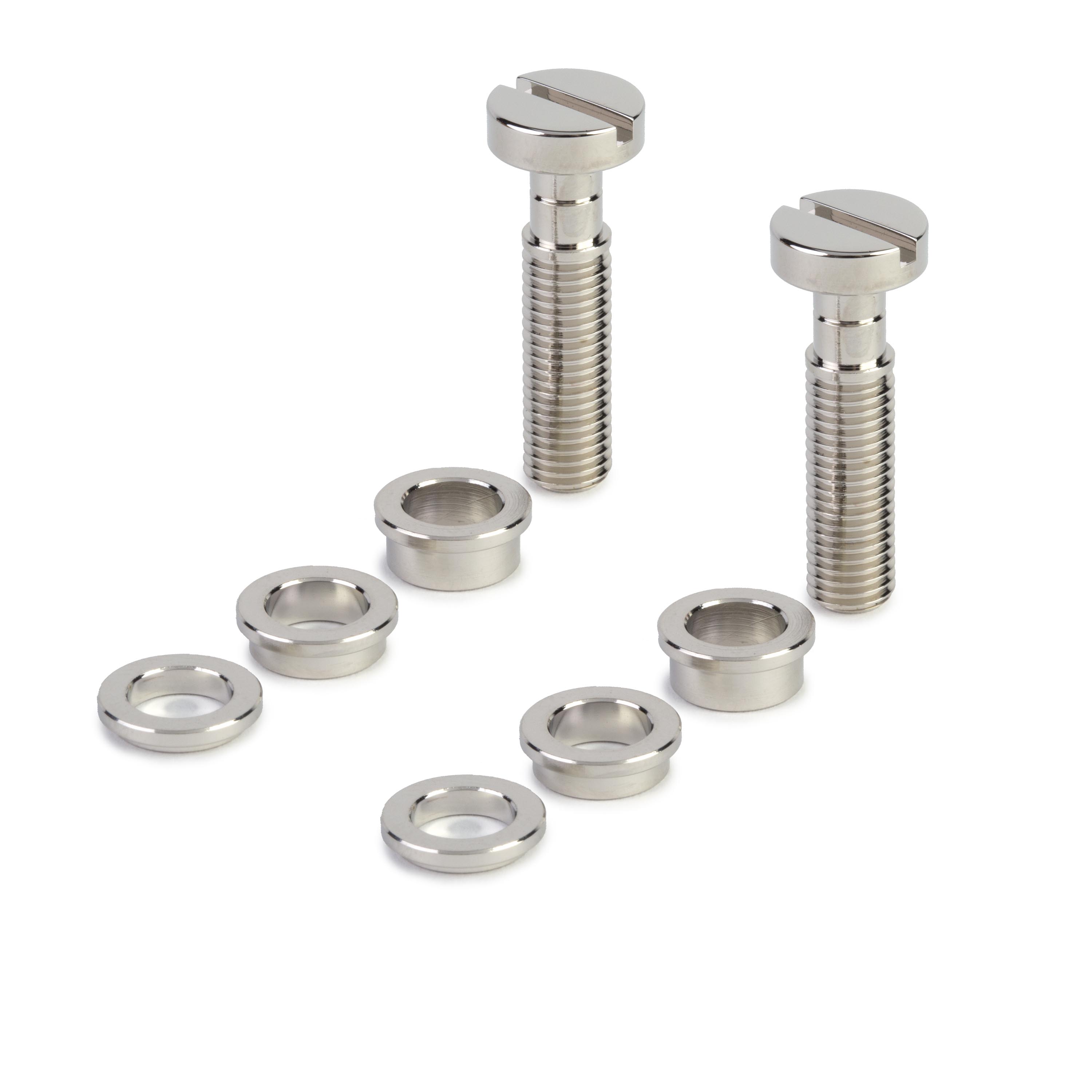 Los postes de repuesto y el espaciador bloquean el cordal firmemente contra los casquillos de la guitarra sin movimiento ni pérdida de tono. El resultado es una excelente transferencia de la vibración de las cuerdas al cuerpo. No solo eso, el acoplador también elimina el "pendiente" de las piezas traseras que no se asientan niveladas, lo que también aumenta el sostenimiento y la resonancia.