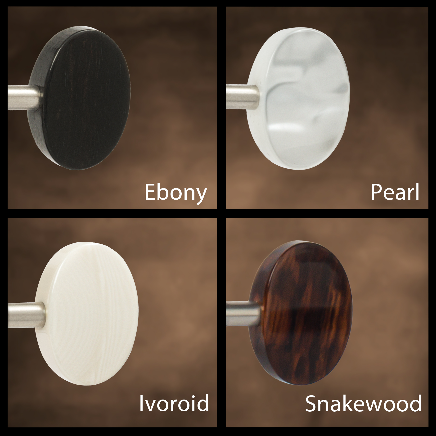 - Los engranajes de 16:1 corona de aleación de bronce son más duraderos que los engranajes de latón utilizados en otros clavijeros.