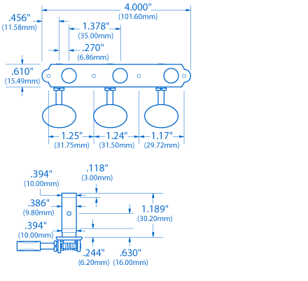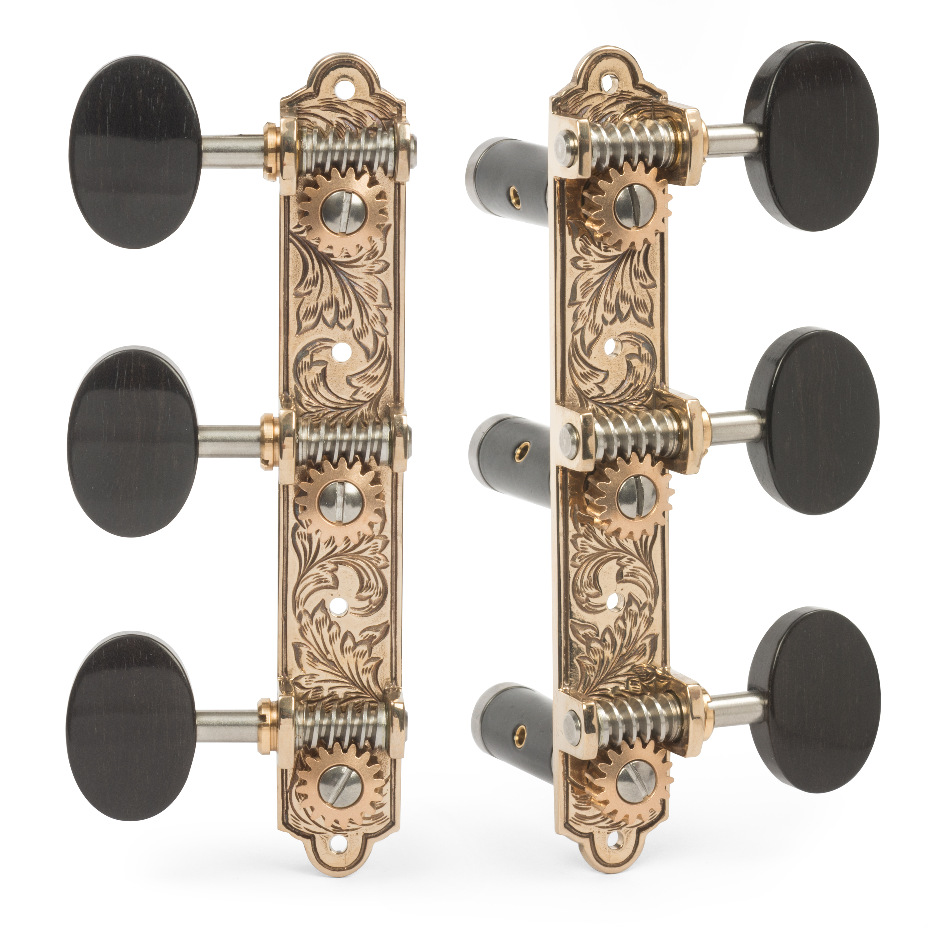 - Los engranajes de 16:1 corona de aleación de bronce son más duraderos que los engranajes de latón utilizados en otros clavijeros.