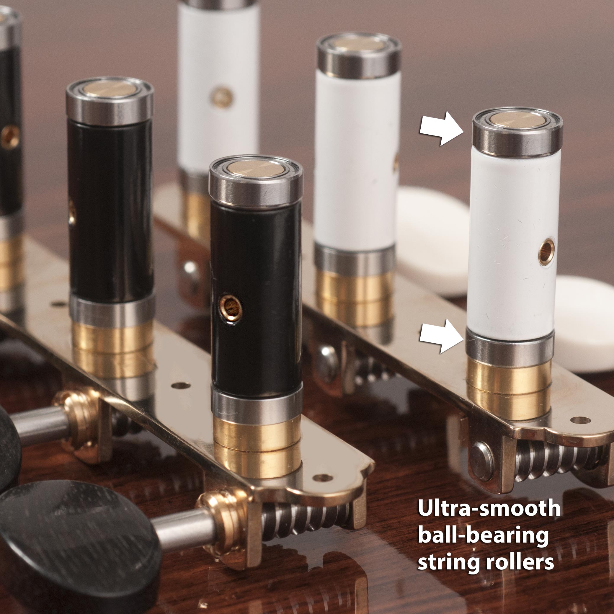 - Los cojinetes de bolas de precisión de cada rodillo de cuerda evitan la binding: un nuevo nivel de ajuste suave y sin esfuerzo para el artista.