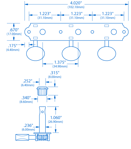 - Diámetro de la eje de cuerda de 0,236" (6,00 mm)