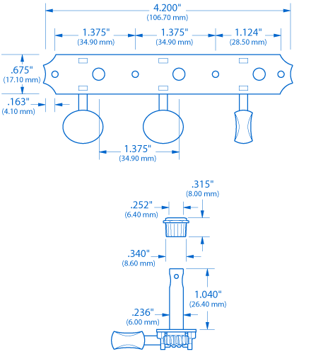 - Espaciado de eje de cuerda de 1-3/8" (34,93 mm)