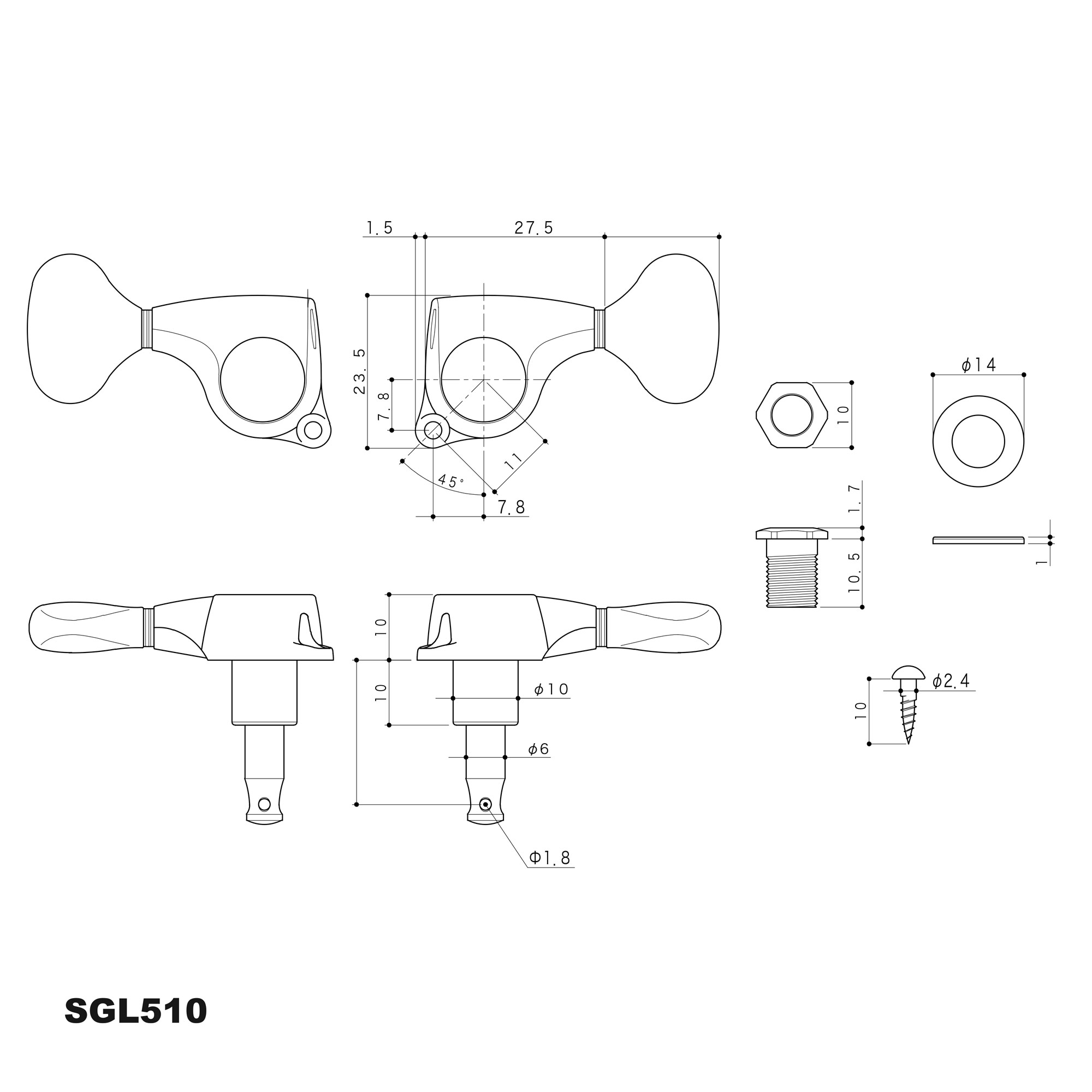 3+3 clavijas de afinación con perillas personalizas Gotoh Mini 510