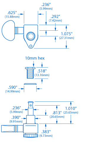 Los clavijeros Roto-Grip de tamaño completo para cabezas de clavija de 3 izquierdas/3 derechas cuentan con: