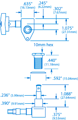 Cuentan con mandos extraíbles de metal art déco con tensión ajustable, carcasas de engranajes fundidos y lubricación sellada de por vida. relación 14:1 de engranajes. Juego de 6, solo para cabezas de clavija de 3 izquierdas/3 derechas.Se incluyen tornillos de montaje y casquillos de pala roscada con arandelas.