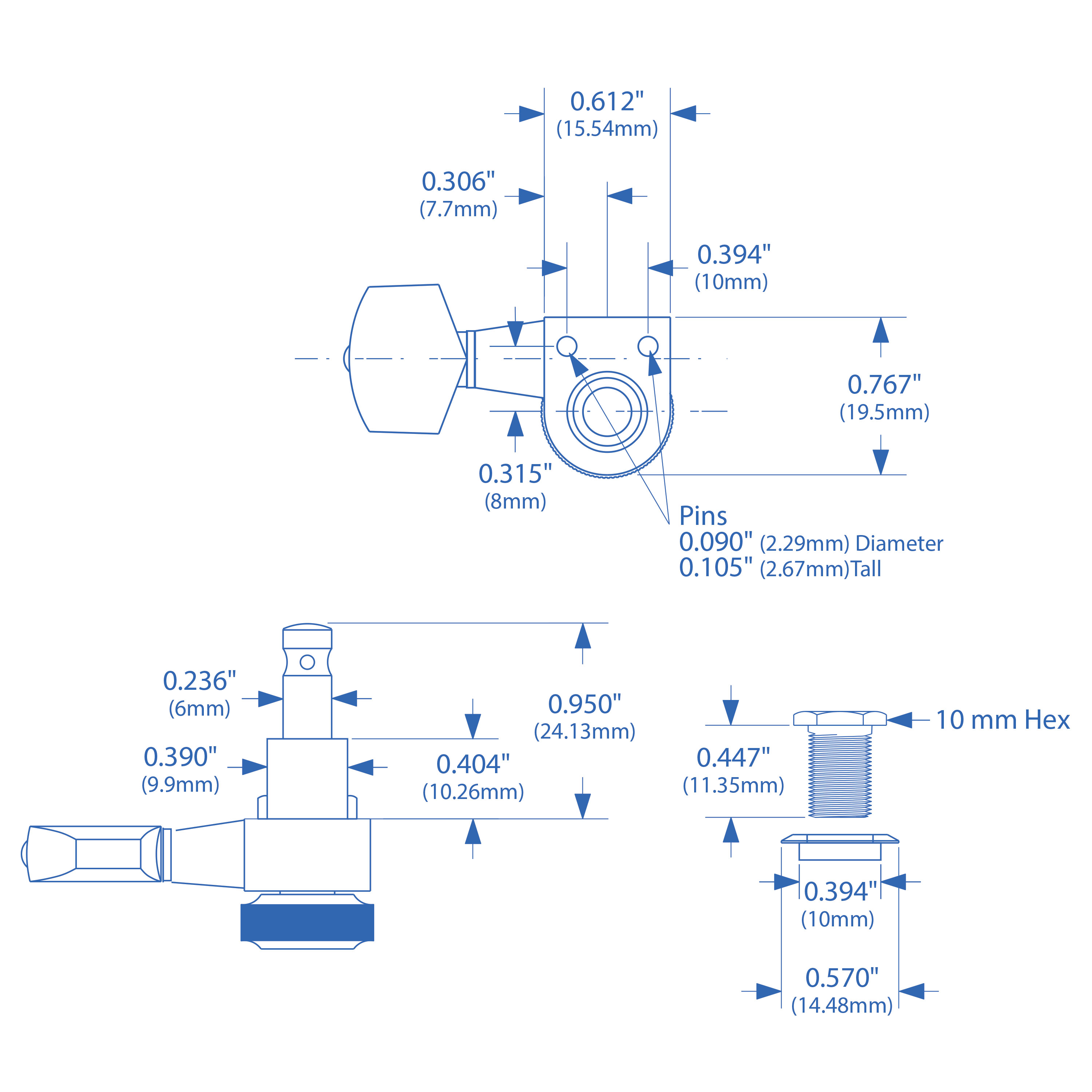 Relación de 16:1 engranajes suave, con un tornillo de mano trasero para bloquear la cuerda. El montaje de pasador en la parte posterior del sintonizador evita que gire, sin necesidad de tornillos de montaje.