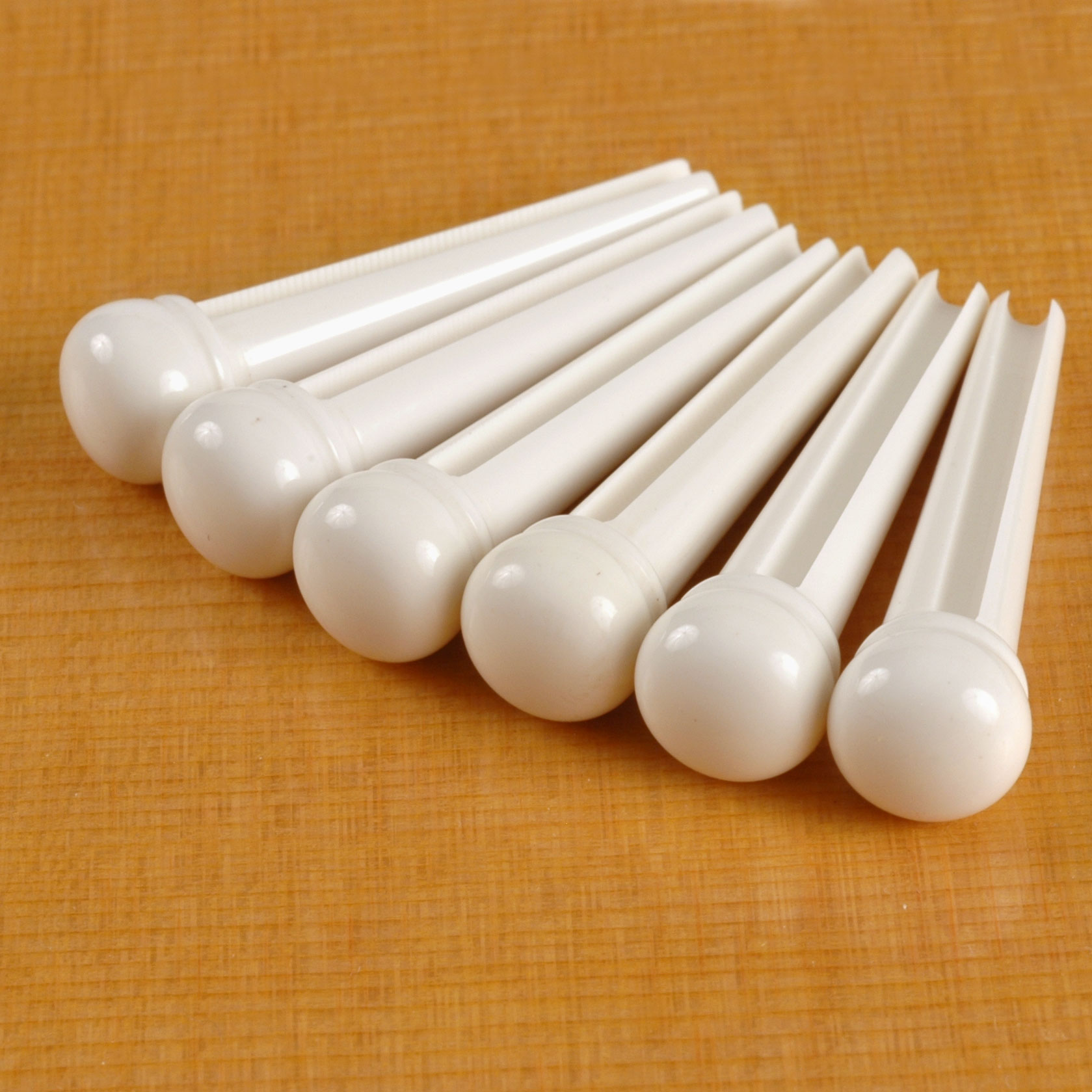 Nuestras perillas de sintonizador blancas, pines de puente, pines de extremo y botones de correa están confeccionados en Galalith, un material denso y duradero utilizado en joyas vintage. Debido a que se mecanizado individualmente, no hay ninguna de las líneas de molde o distorsión comunes a las piezas de plástico baratas. Funcionan perfectamente y son las mejores que puedes comprar.