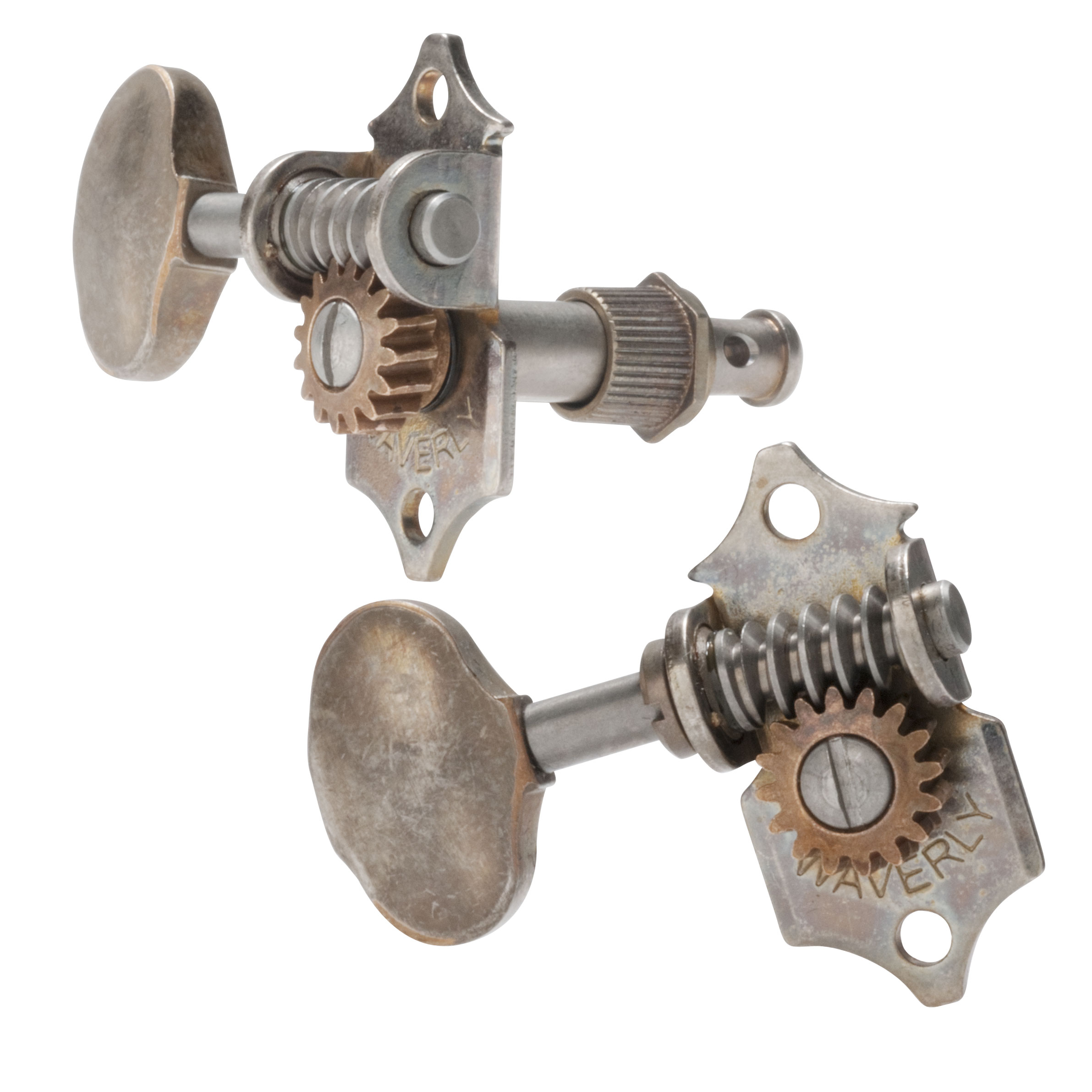 Las clavijas Waverly ofrecen precisión moderna con un estilo vintage. Prueba nuestro acabado en níquel relic, con apariencia vintage ideal para guitarras vintage o de reproducción.