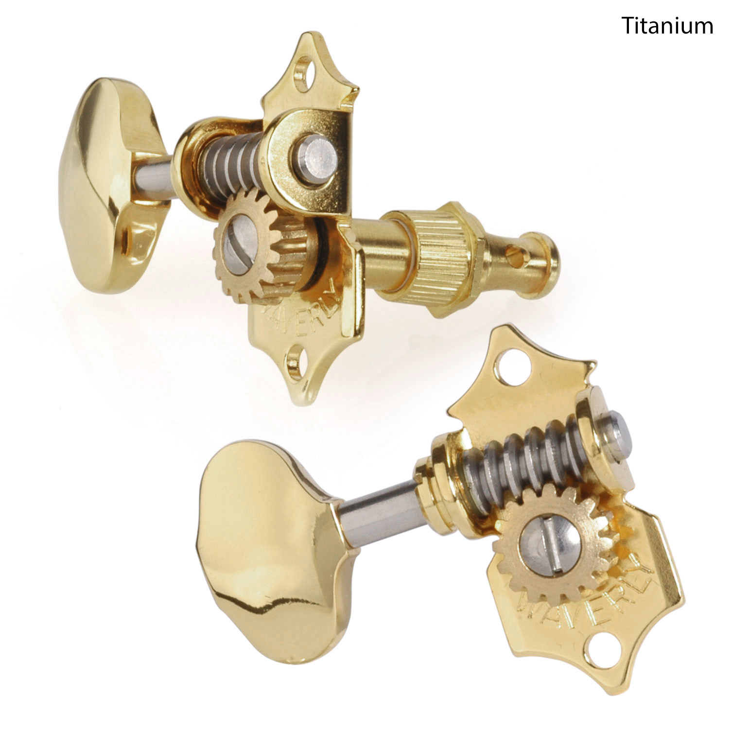 El engranaje helicoidal de acero inoxidable y el engranaje del eje de cuerda —fabricado en aleación de bronce mecanizado— de las clavijas Waverly son más duraderos que los engranajes de latón que usan otras clavijas.