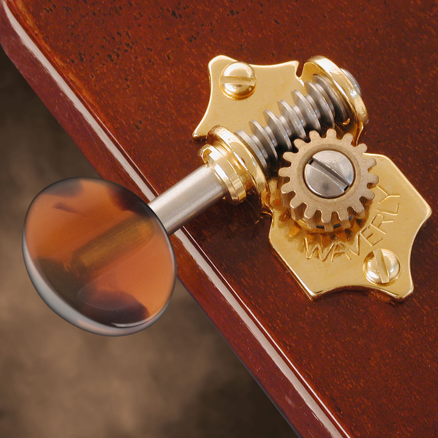 Con las clavijas Waverly, afinas tu guitarra y la afinación se mantiene. El diseño patentado de Waverly combina acero inoxidable con bronce para crear un ajuste suave y antideslizante. Las máquinas Waverly, clavijeros para instrumentos valiosos, están hechas a mano para ajustarse con precisión sin perforar guitarras Martin y Gibson antiguas. Fabricantes como C.F. Martin, Gibson, Collings, Santa Cruz, Huss & Dalton, Sams y Bourgeois eligen Waverlys por sus mejores instrumentos.