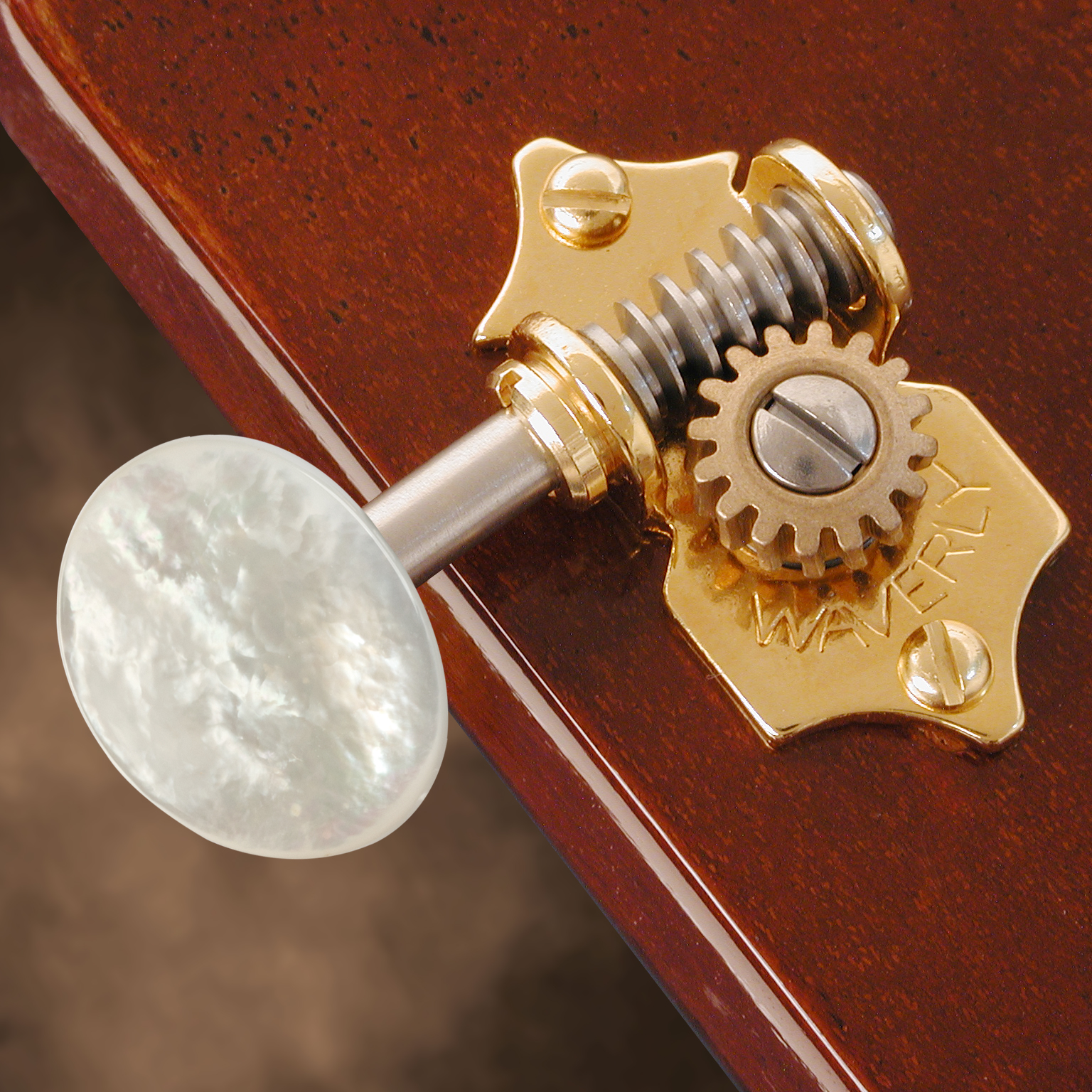 Con las clavijas Waverly, afinas tu guitarra y la afinación se mantiene. El diseño patentado de Waverly combina acero inoxidable con bronce para crear un ajuste suave y antideslizante. Las máquinas Waverly, clavijeros para instrumentos valiosos, están hechas a mano para ajustarse con precisión sin perforar guitarras Martin y Gibson antiguas. Fabricantes como C.F. Martin, Gibson, Collings, Santa Cruz, Huss & Dalton, Sams y Bourgeois eligen Waverlys por sus mejores instrumentos.