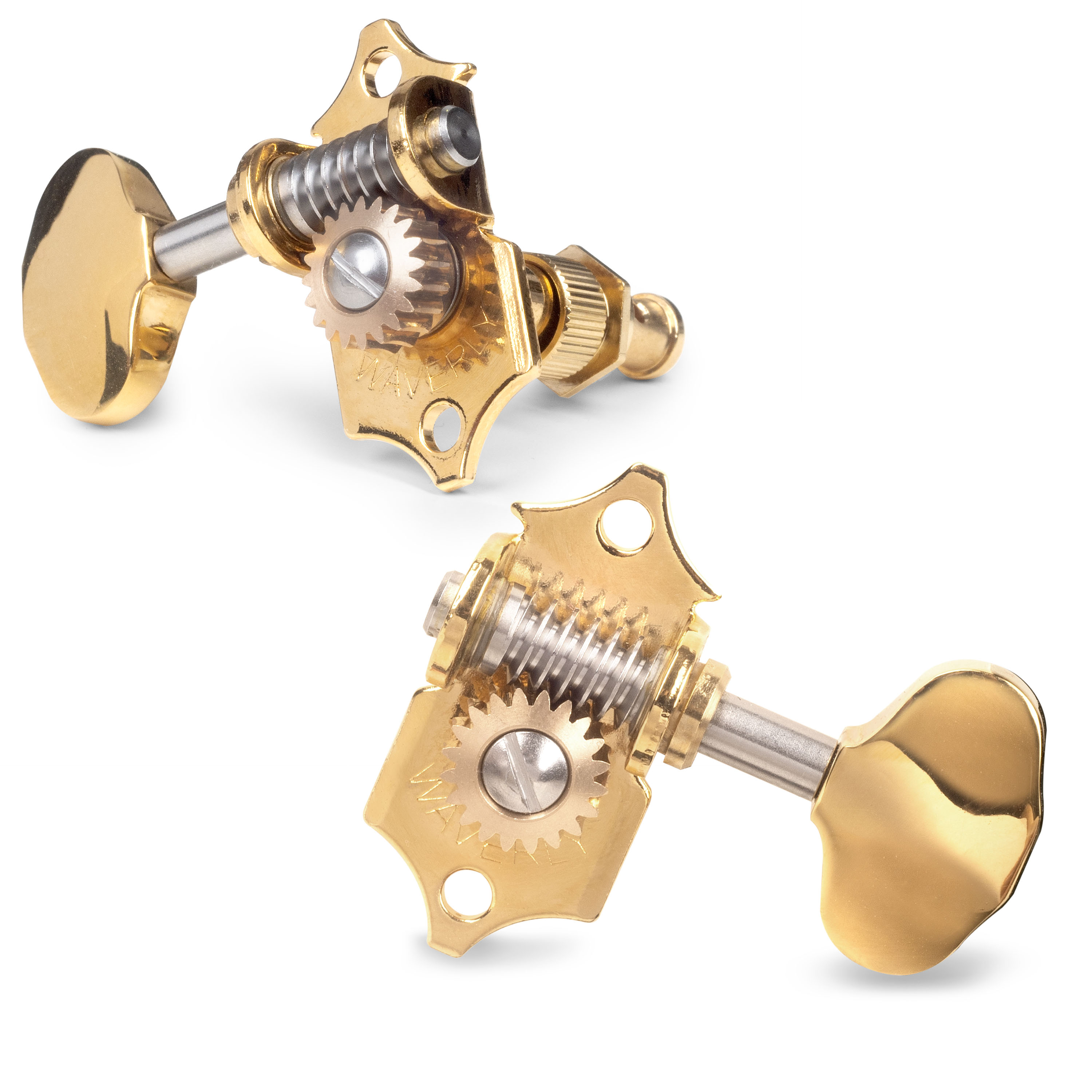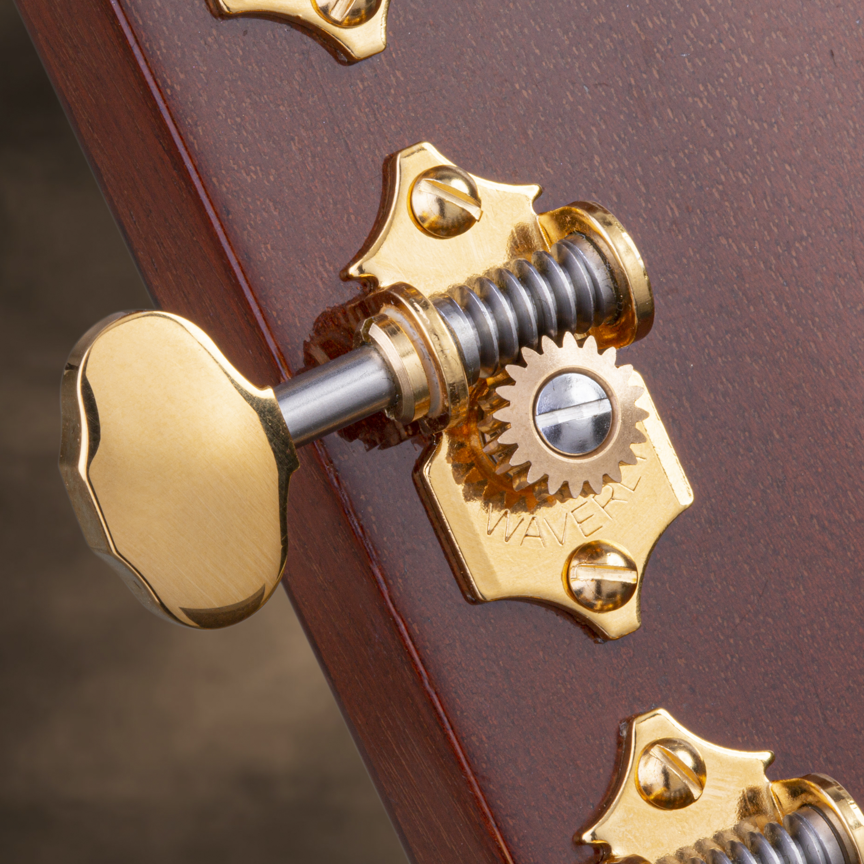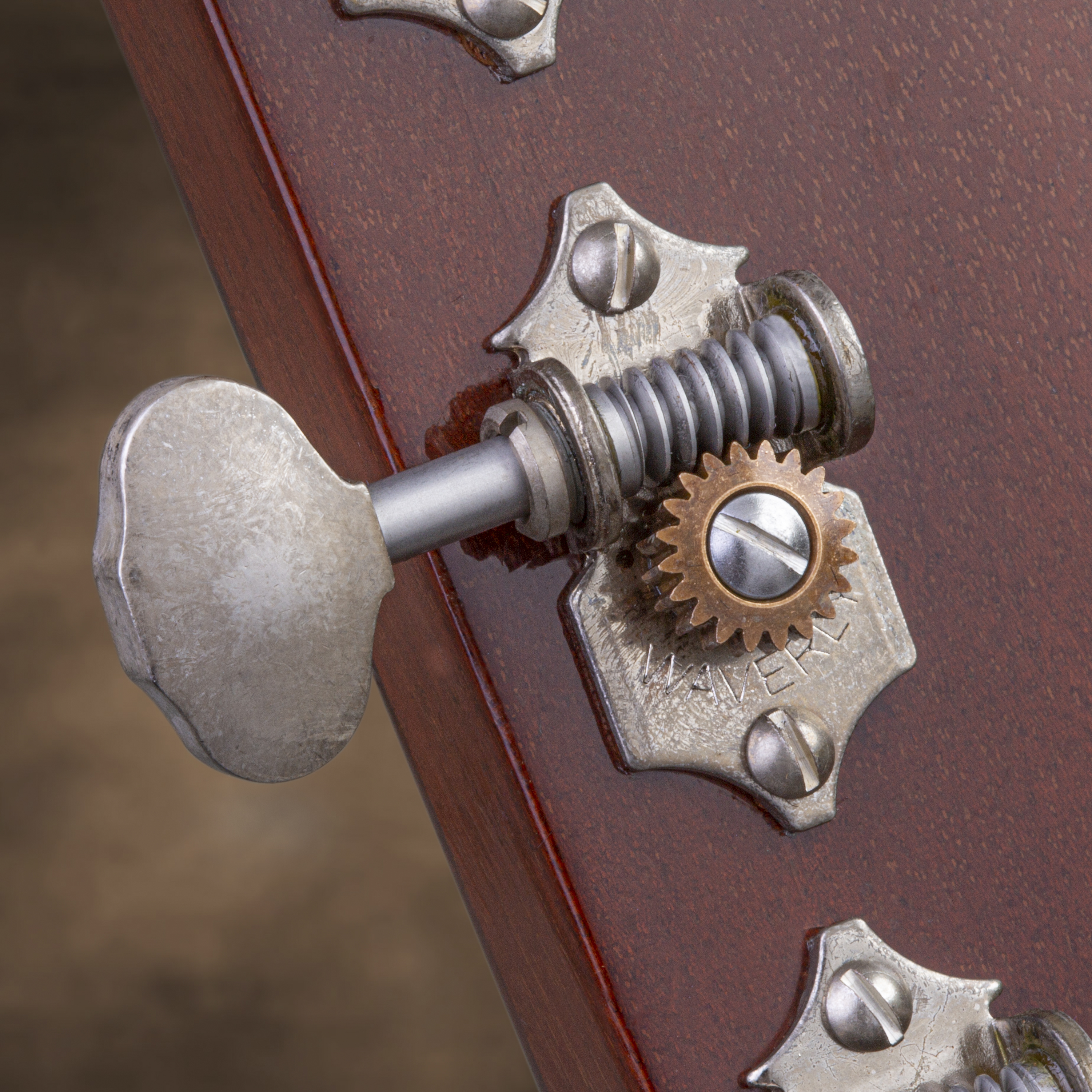Waverly utiliza solo materiales de la más alta calidad para cada parte del sintonizador. Los engranajes de aleación de acero inoxidable y bronce mecanizado son más clavijeros de calidad estándar.