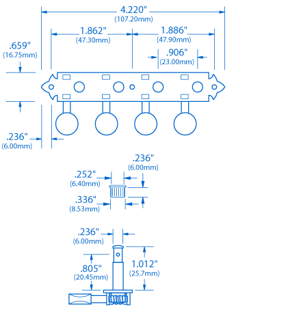 Espaciado entre orificios: los clavijeros en la placa no pueden funcionar de manera eficiente si los orificios de clavijero se perforan correctamente. Nuestra plantilla de taladro de cabeza de tetón Mandolin garantiza un espaciado preciso de 29/32" para una alineación precisa para este clavijeros.
