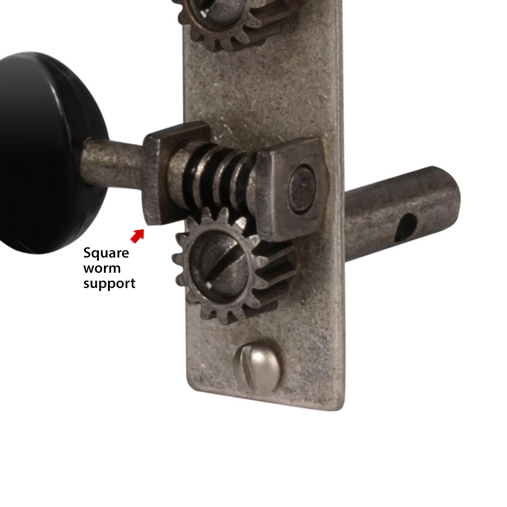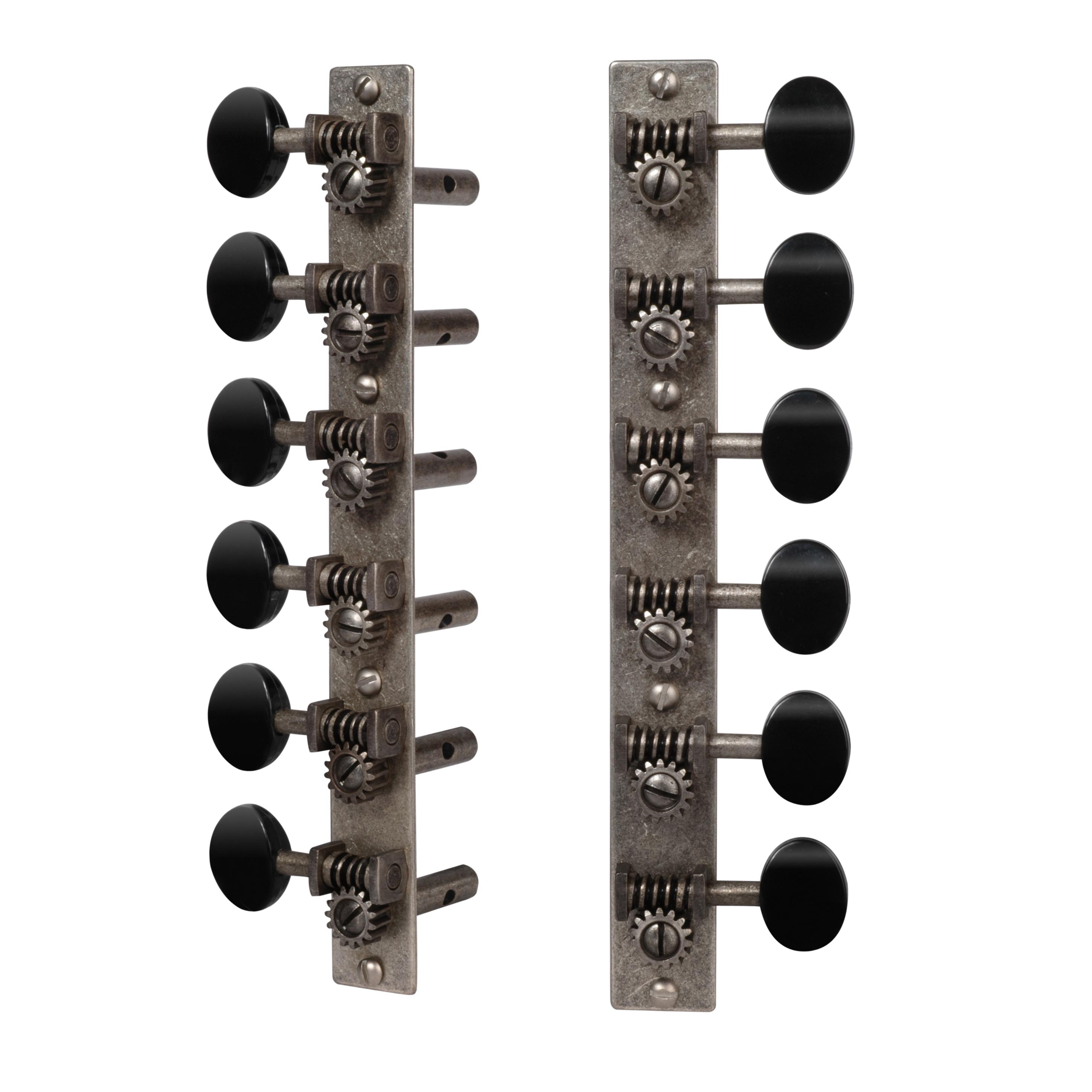 Su sencillo diseño de engranaje abierto de 6 en placa mejorará el ajuste sin añadir un peso significativo a la pala. El acabado de níquel reliquia añade un aspecto auténtico a los instrumentos vintage y de reproducción. Juego completo para pala ranurada de 12 hilos.“Durante 20 años hemos estado muriendo por que alguien fabricara clavijeros como estos. A las personas que construyen instrumentos replicados o que realizan cualquier trabajo de restauración o reparación les encantarán. ¡Excelente, StewMac!"